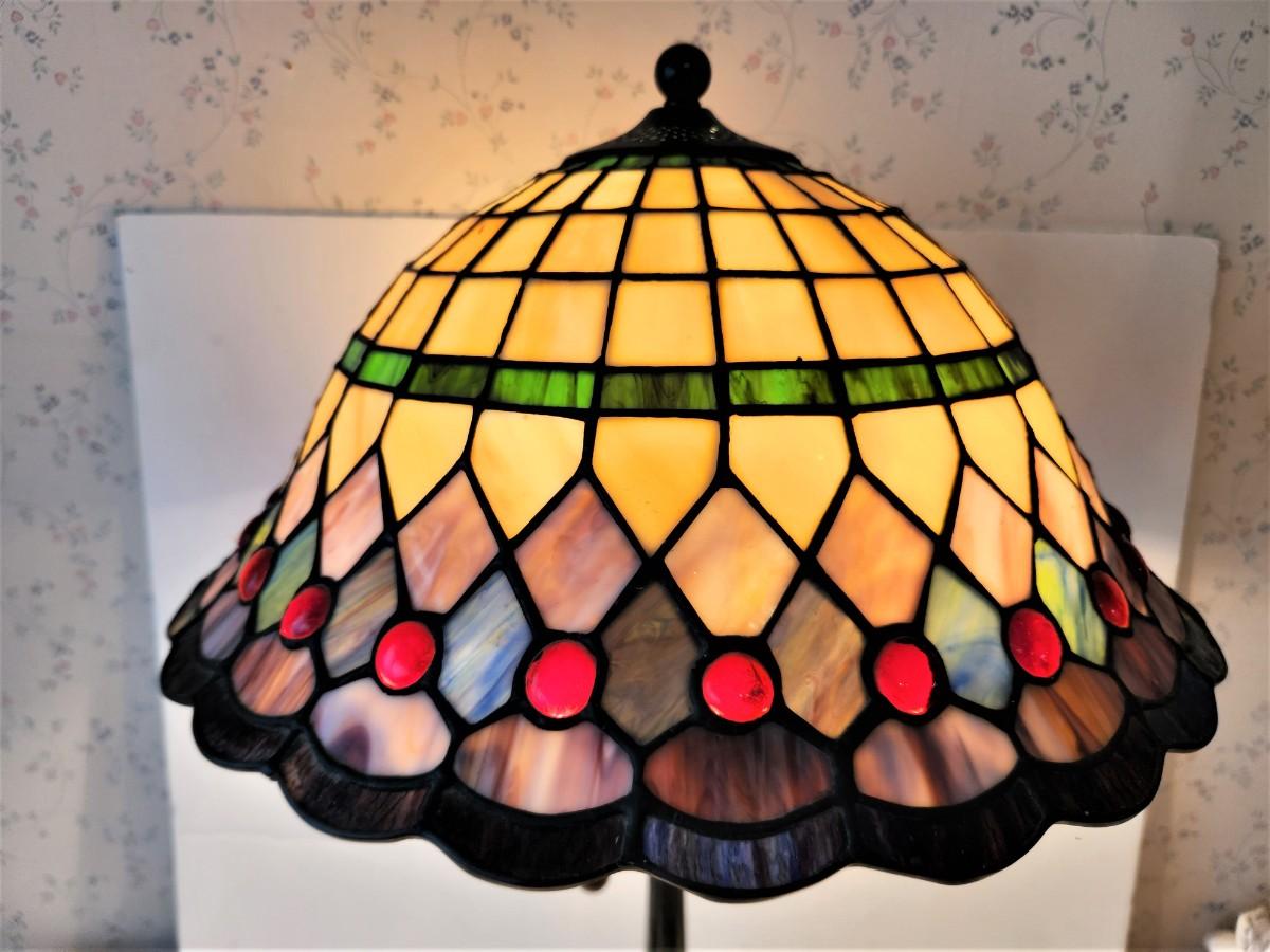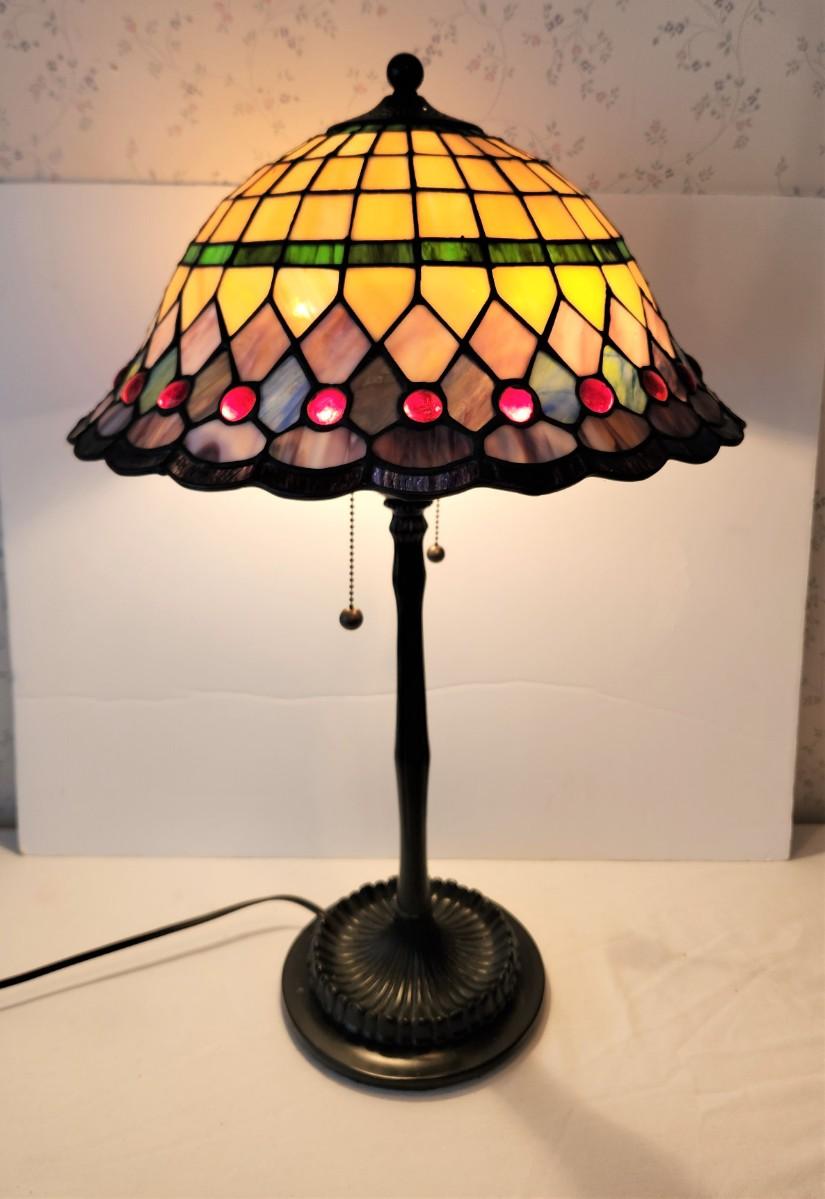 Nice 2-bulb contemporary stained glass table lamp, great condition. 26" tall.