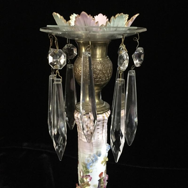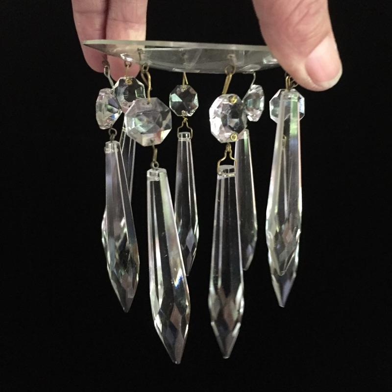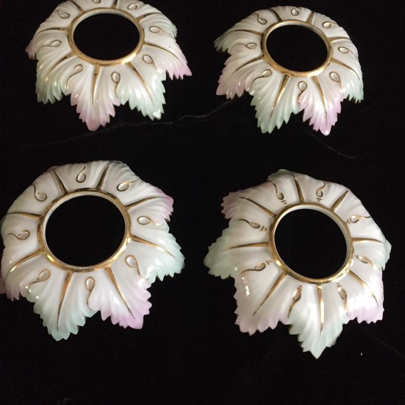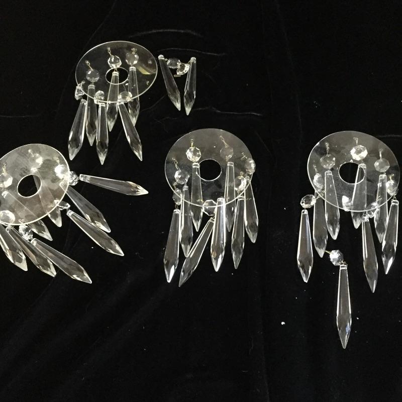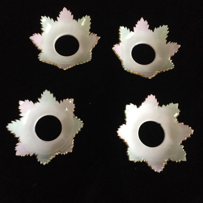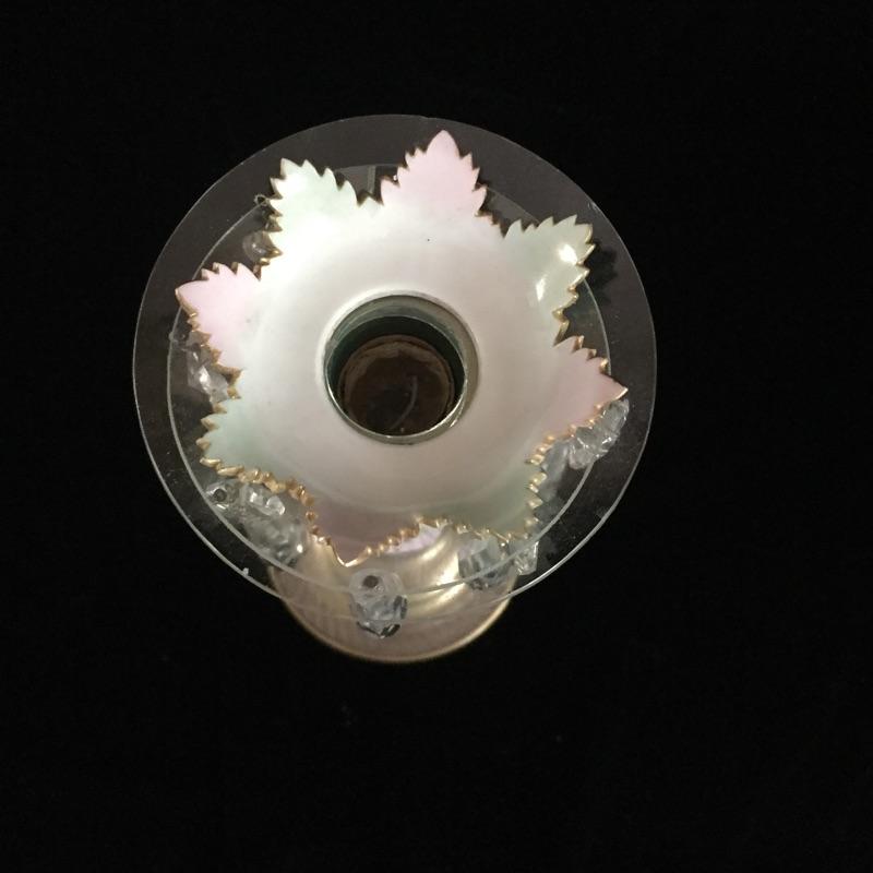 Dress up and transform your candlesticks with these Bobeches. Included are 4 chandelier style Bobeches, a couple have detached pieces but they will be simple to fix and 4 pretty candlestick accents which are leaves tipped with gold and 6 glass Bobeches that get placed under the aforementioned decorative pieces. Your candles will look delightful with this collection of accent pieces. Please note the candle holder does not come with this lot, used for photographing only.