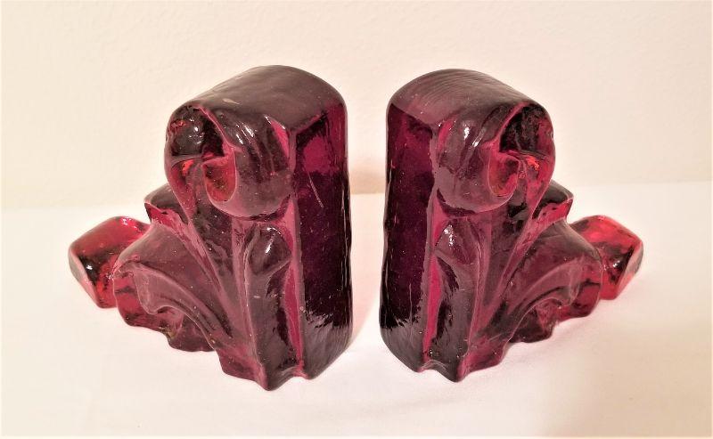 Lot #186  Deep Ruby Red Studio Glass Bookends