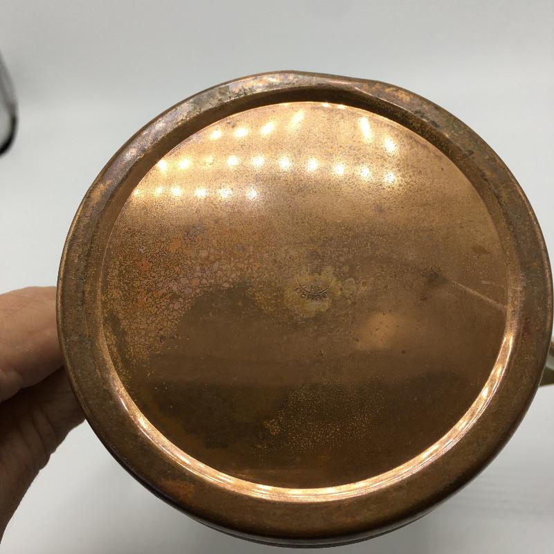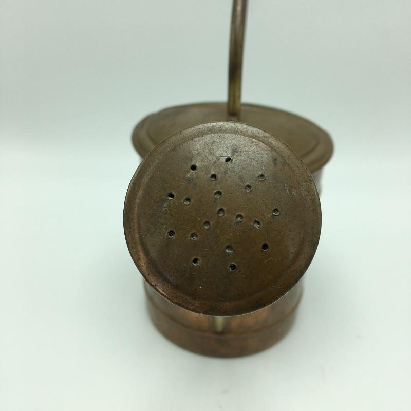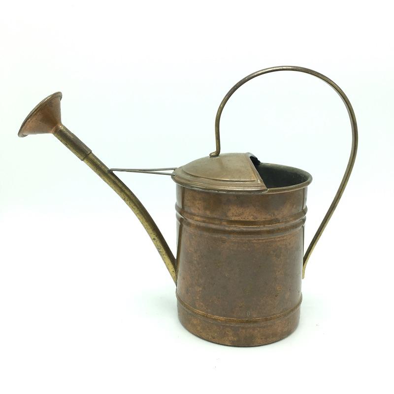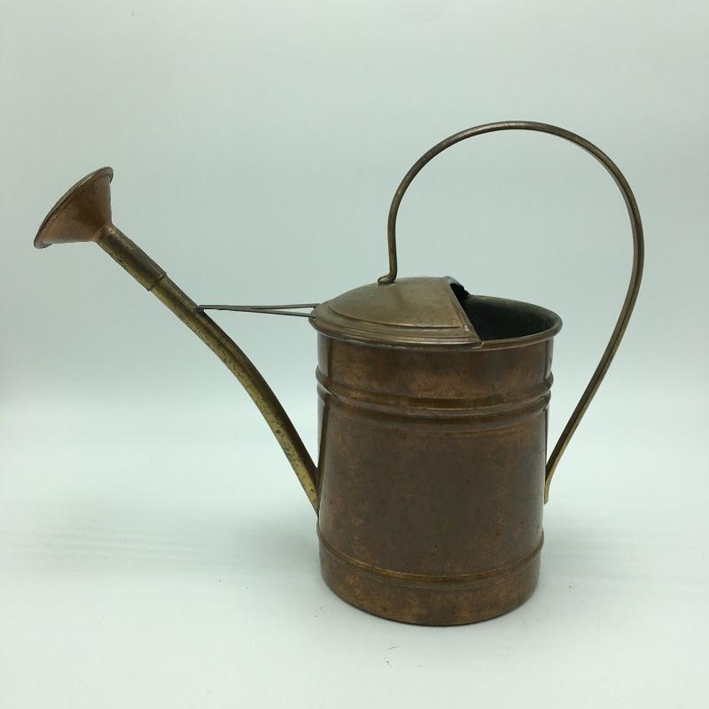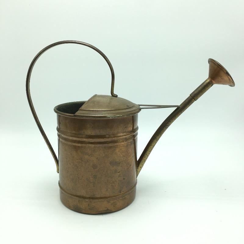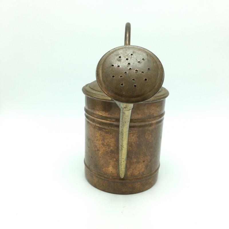 Douro B & M vintage copper watering can with brass handle and spout. The watering cans measurements are 8”tall to the top of the brass handle and a 4”D base.