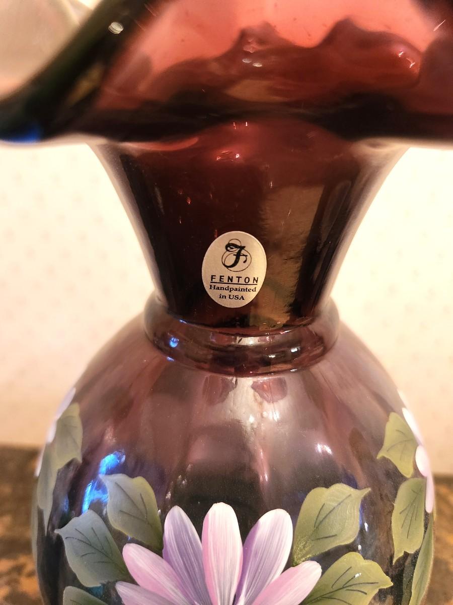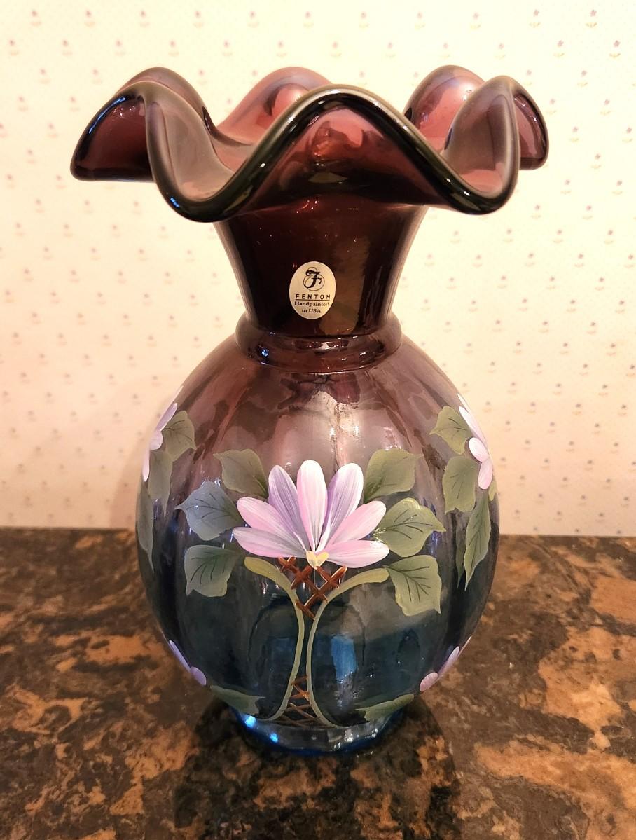 Lovely Fenton Art Glass Vase - 2002 Showcase dealer exclusive - limited edition 311/1950, 9" tall. Mulberry color - hand painted. Great condition - no box.