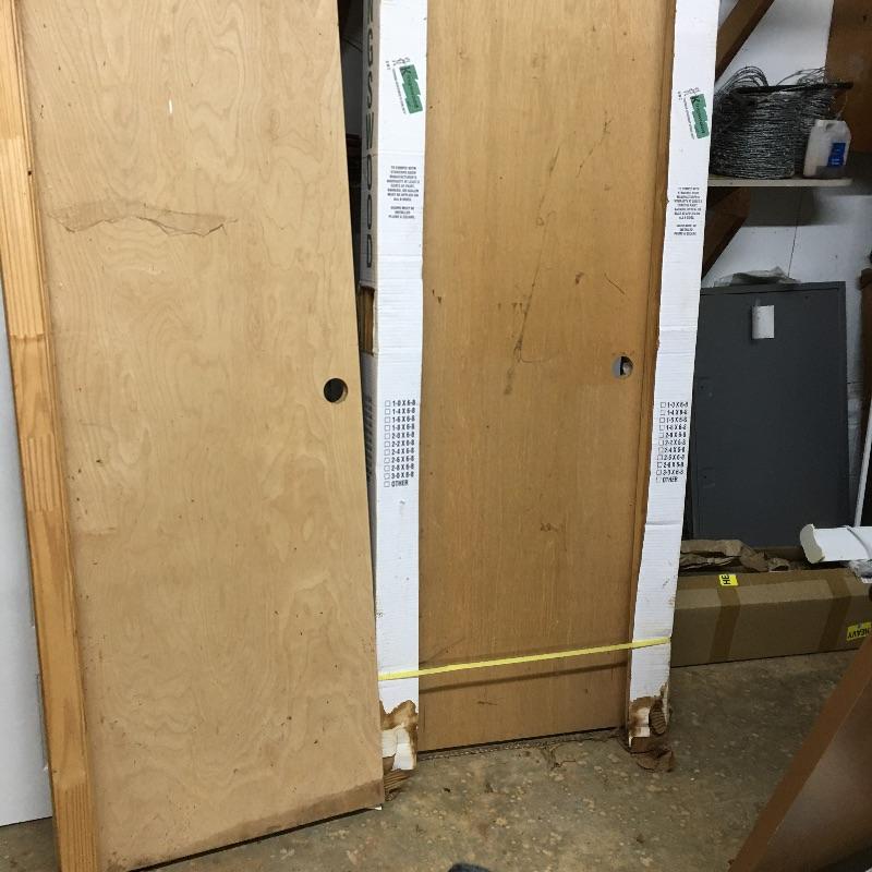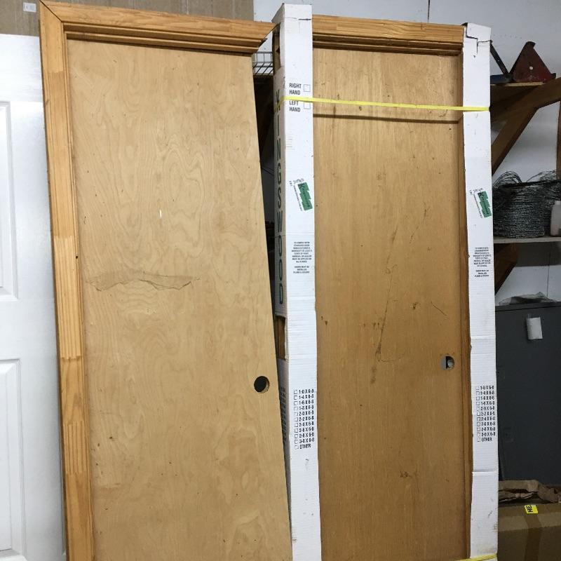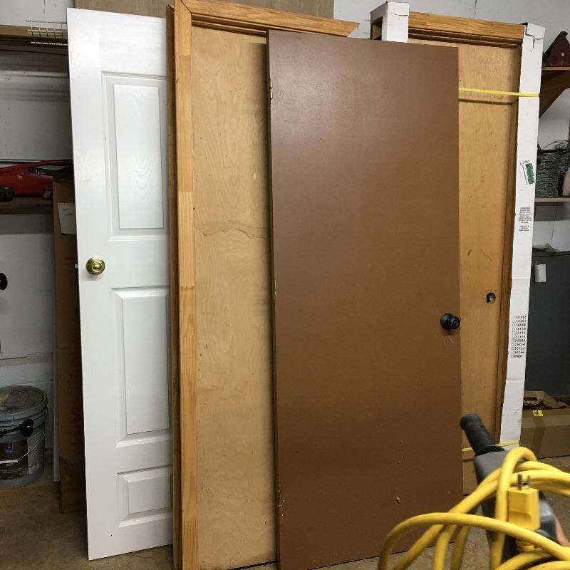 Finish up the projects around your house with these four interior doors. White and brown doors measure 32” x 80”. See pictures for measurements of doors with framing. Brown door appears to have a blemish where a sign was, see pictures.
