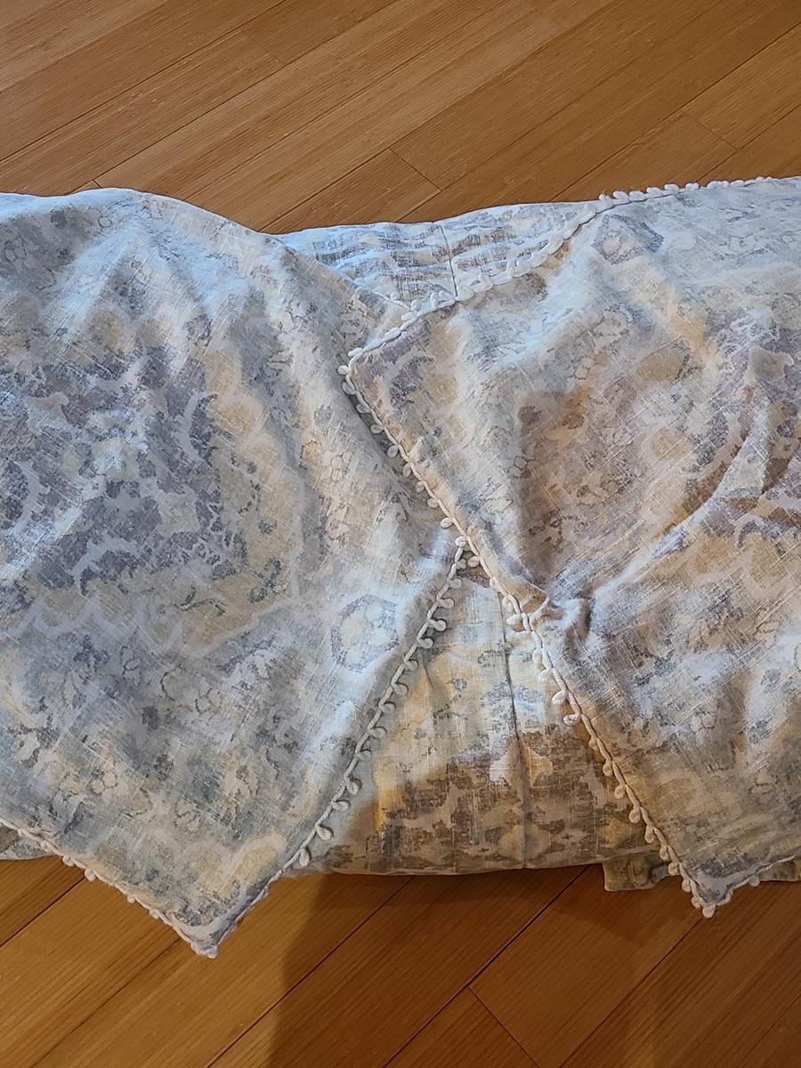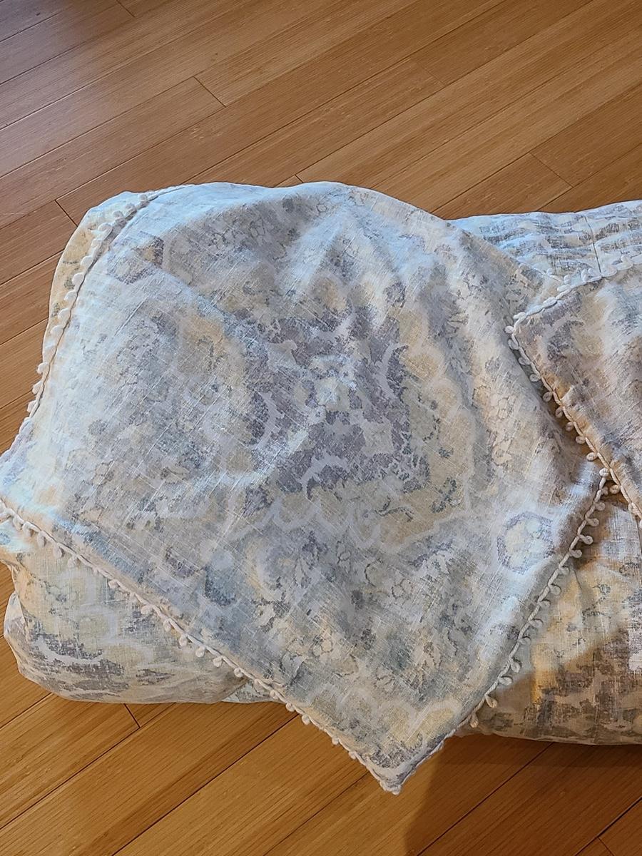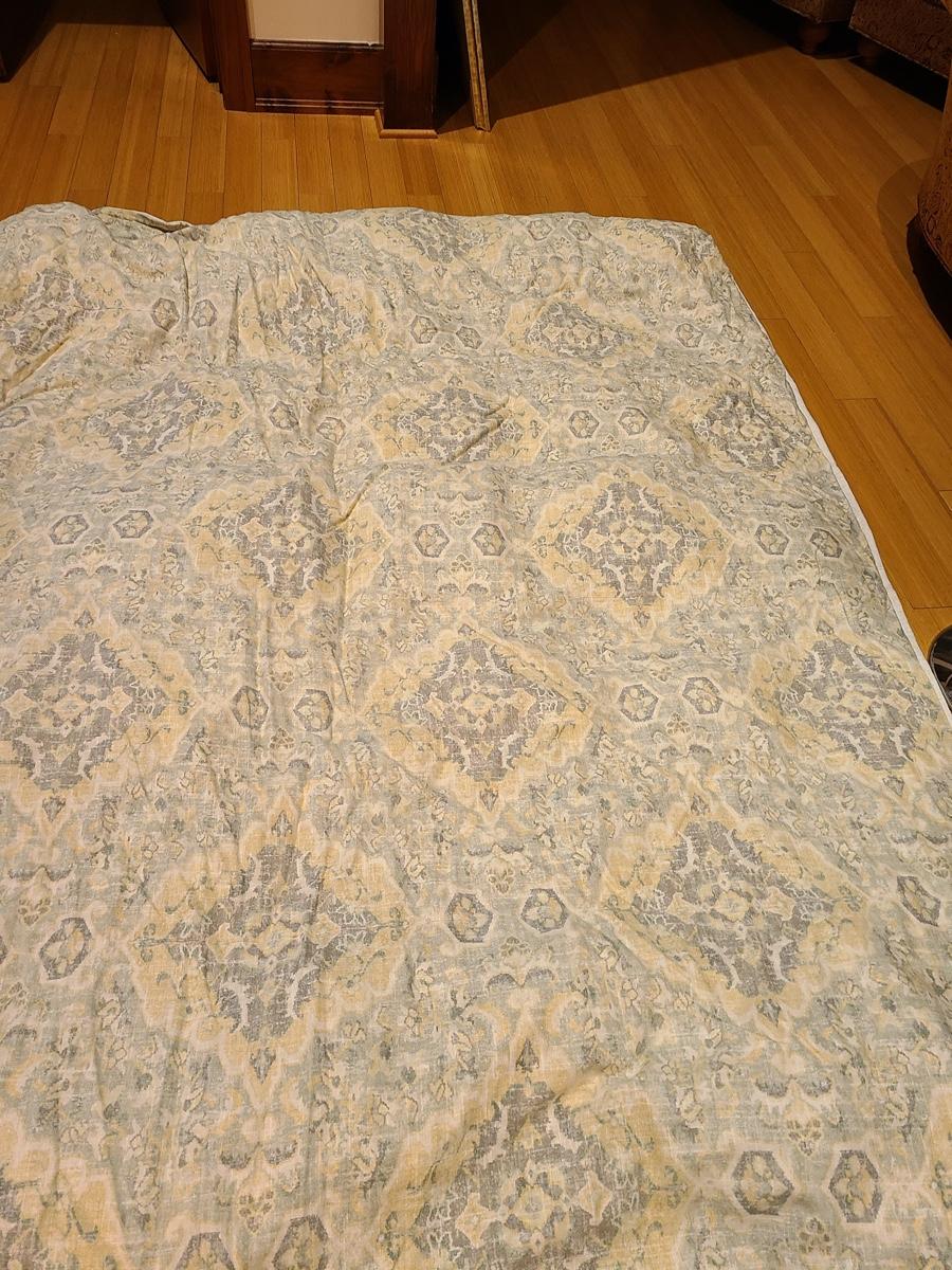 Lot 186: Frontgate "Cyprus" King Size Duvet/Sham Set (Soft Greys, Yellows, and Creams)