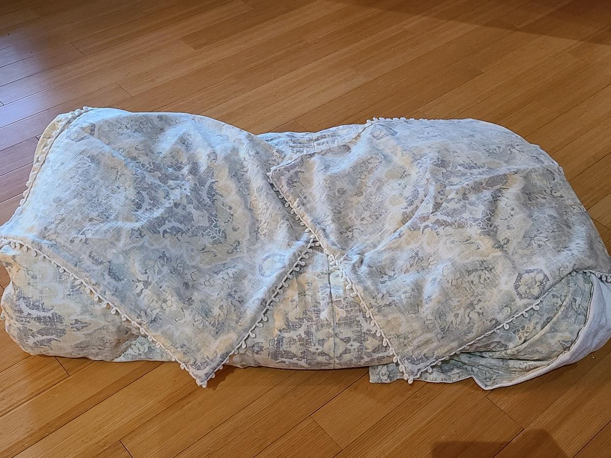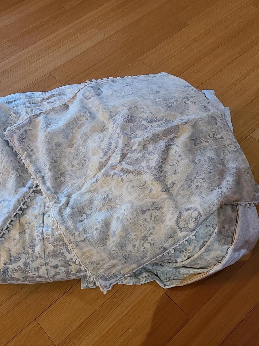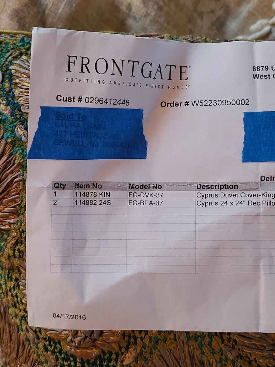 Lot 186: Frontgate "Cyprus" King Size Duvet/Sham Set (Soft Greys, Yellows, and Creams)