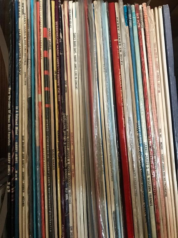 This lot contains all things Harry James! If you love this Jazz musicians style, you will want all of these CDs, LPs, 78”, VHS tapes and music publications. There is even a framed signed album with his signatures as well as three others. (Glass is broken on frame) See photos for titles and details. Local pick up only.