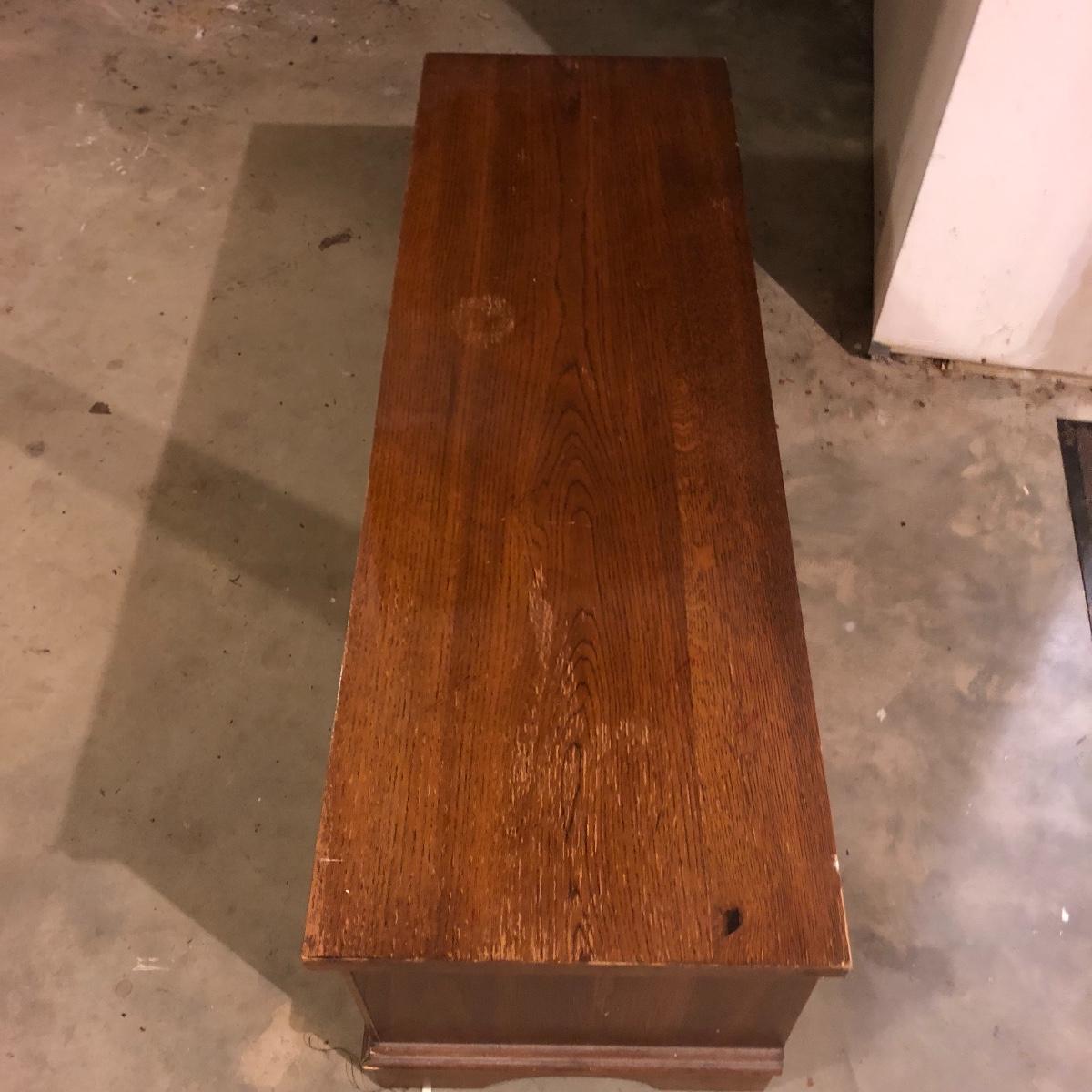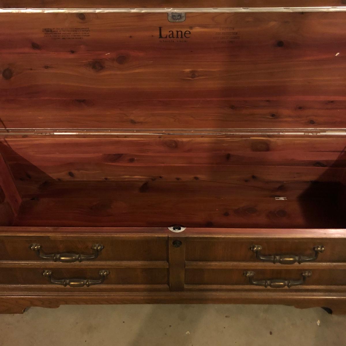 This cedar lined Lane chest is a great looking piece offering a large amount of storage in an attractive piece! The chest has 4 faux drawers with aged brass handles.