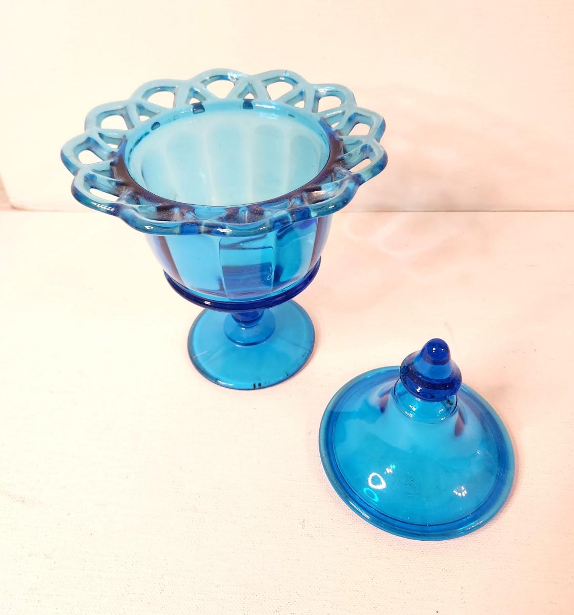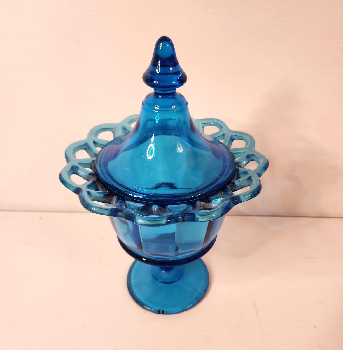 This Imperial Candy Dish (MCM) is in EXCELLENT condition - no issues - deep blue color, about 10" tall. 1960's - a great example of MCM glass.