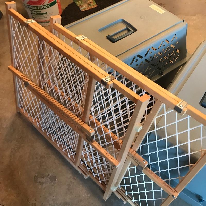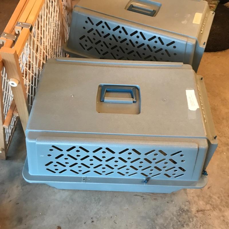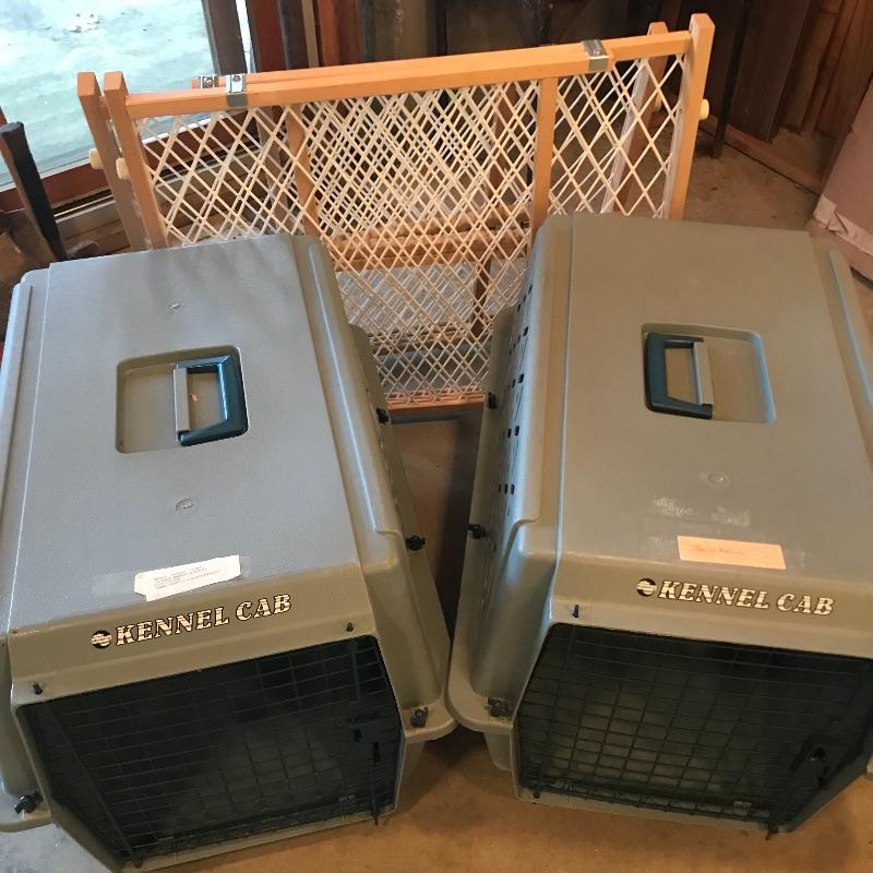 This lot includes two pet crates for cats or small dogs (approx. 25” x 18” x 16”) and two pet gates for containing your dog or wandering toddlers. See pics. Local pickup only.