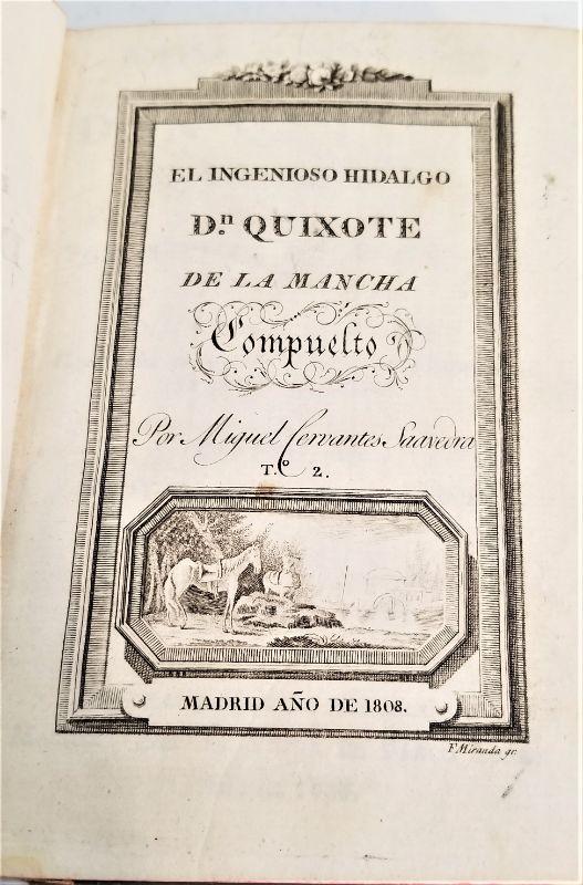 This scarce little set, published in Madrid (Spain) in 1808, is in excellent condition. Don Quixote, published in two volumes - complete We were only able to locate one other set like it - the rare book dealer is asking over $250.00. Very scarce in any condition.