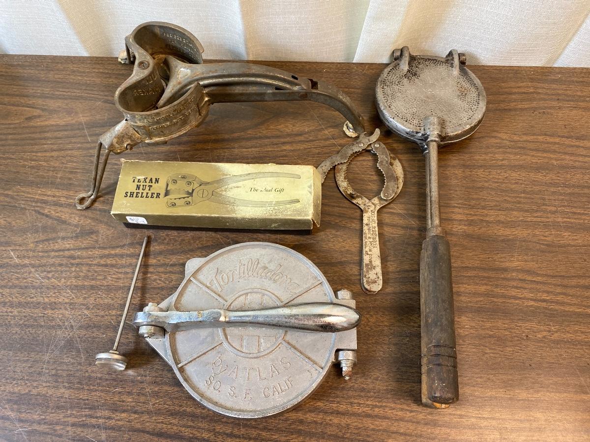 Lot 186 s 6 Vintage Kitchen Items Atlas Nut Sheller Mouli Salad