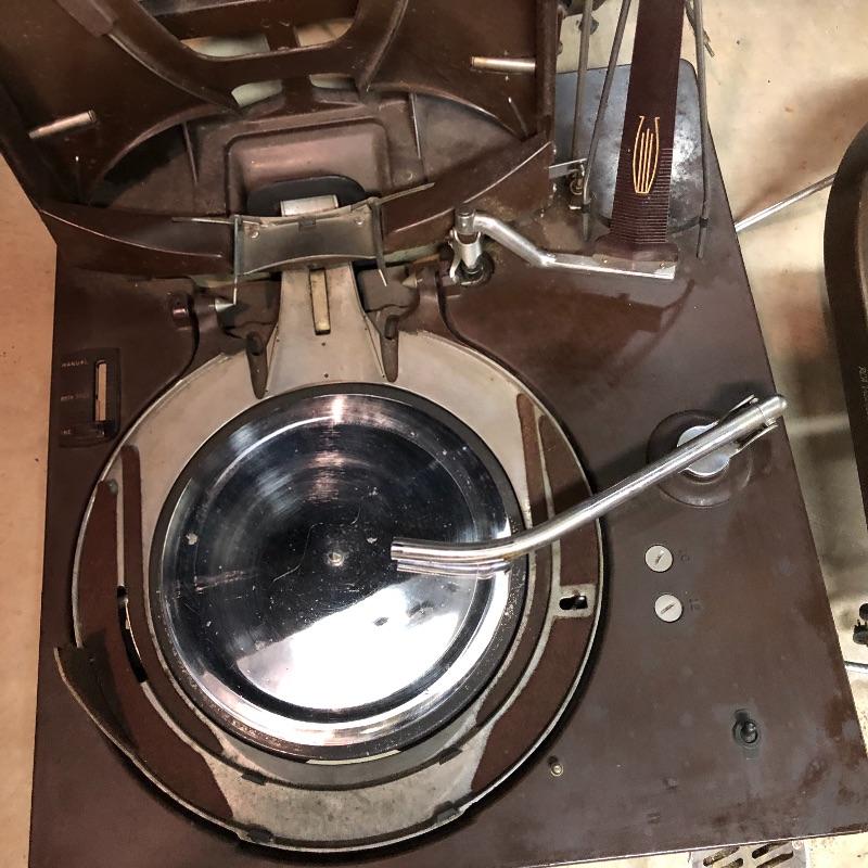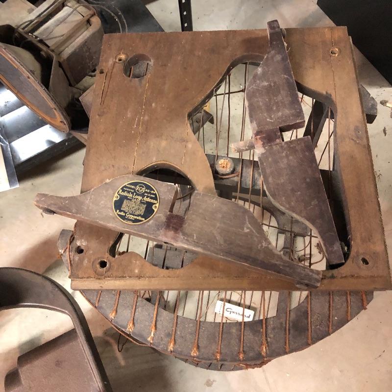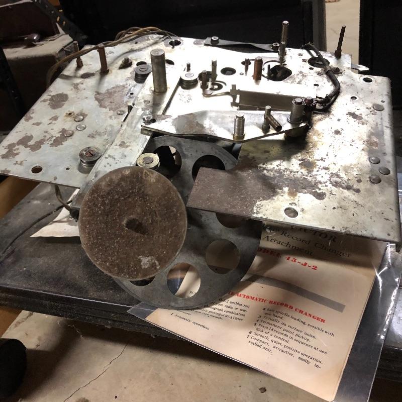 This lot contains two Capehart Victrola turntables and two other turntables. It also includes a Radiola Loop Antenna and other parts.