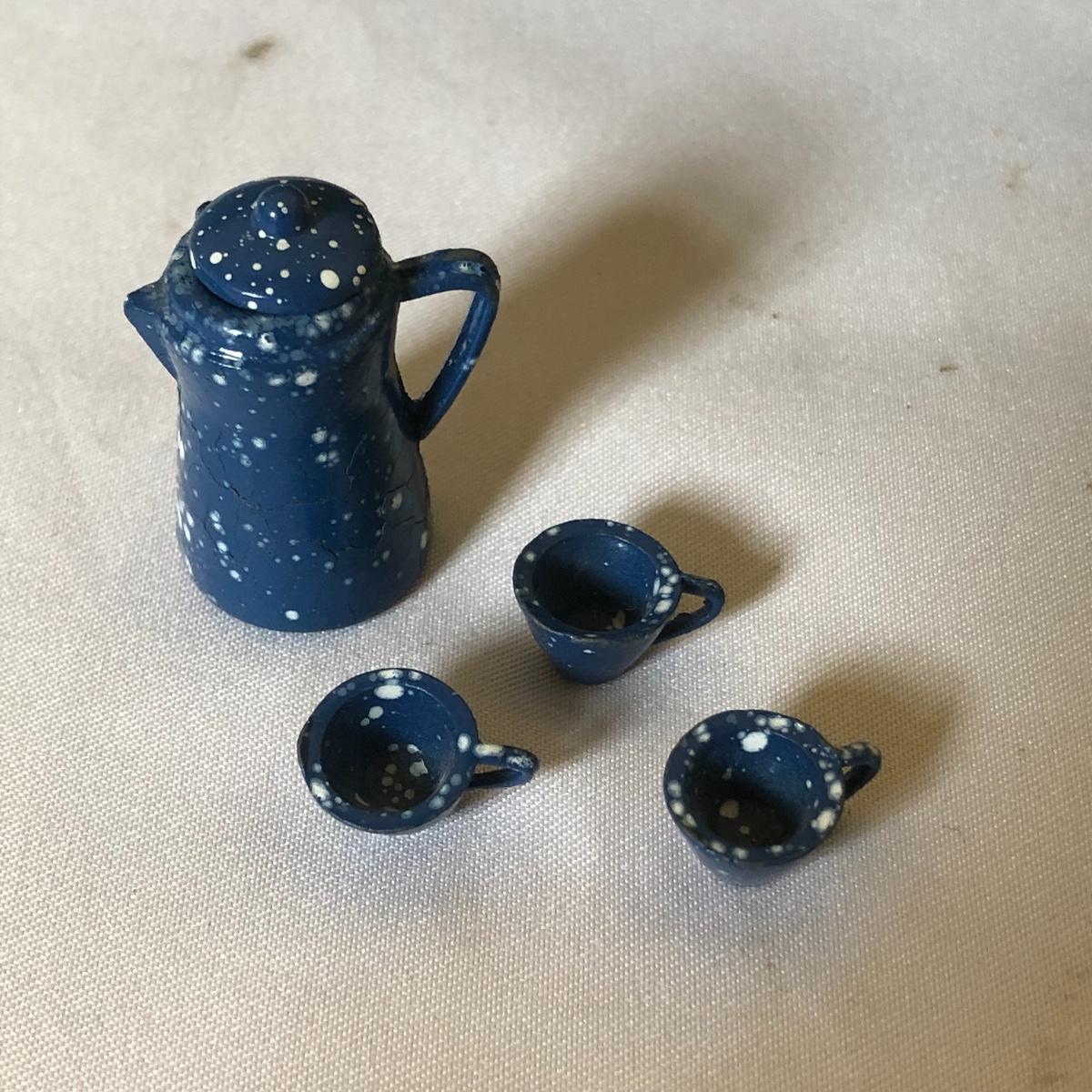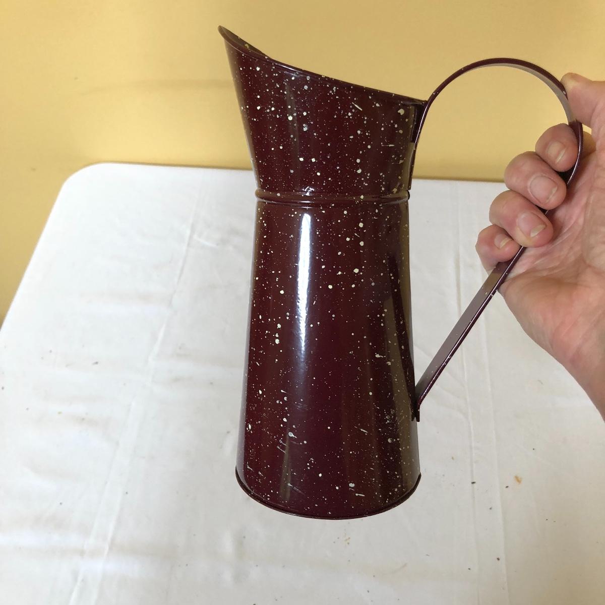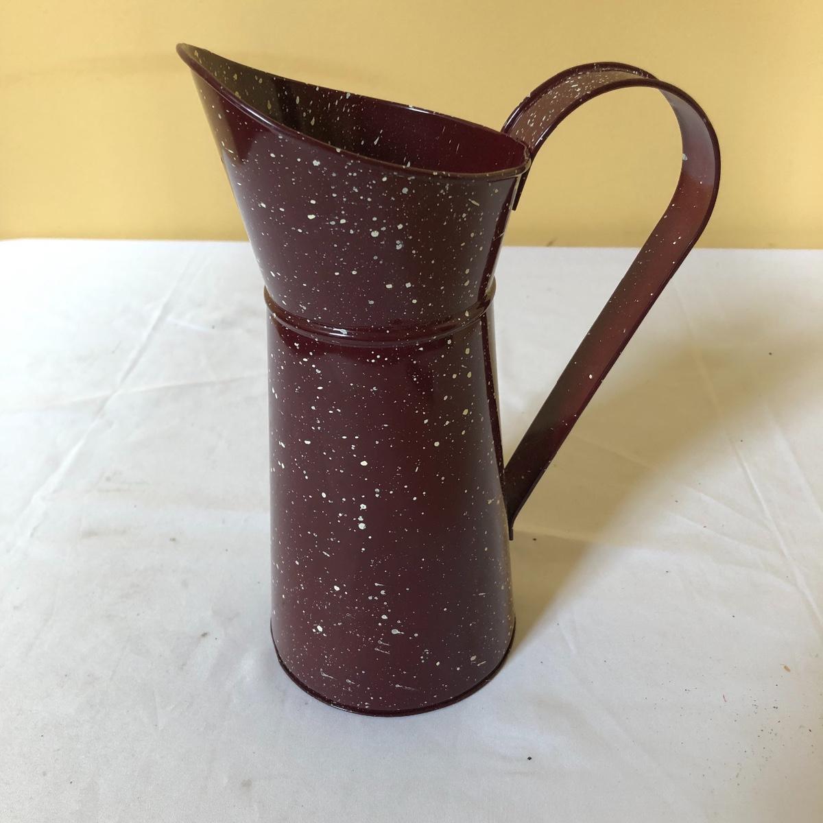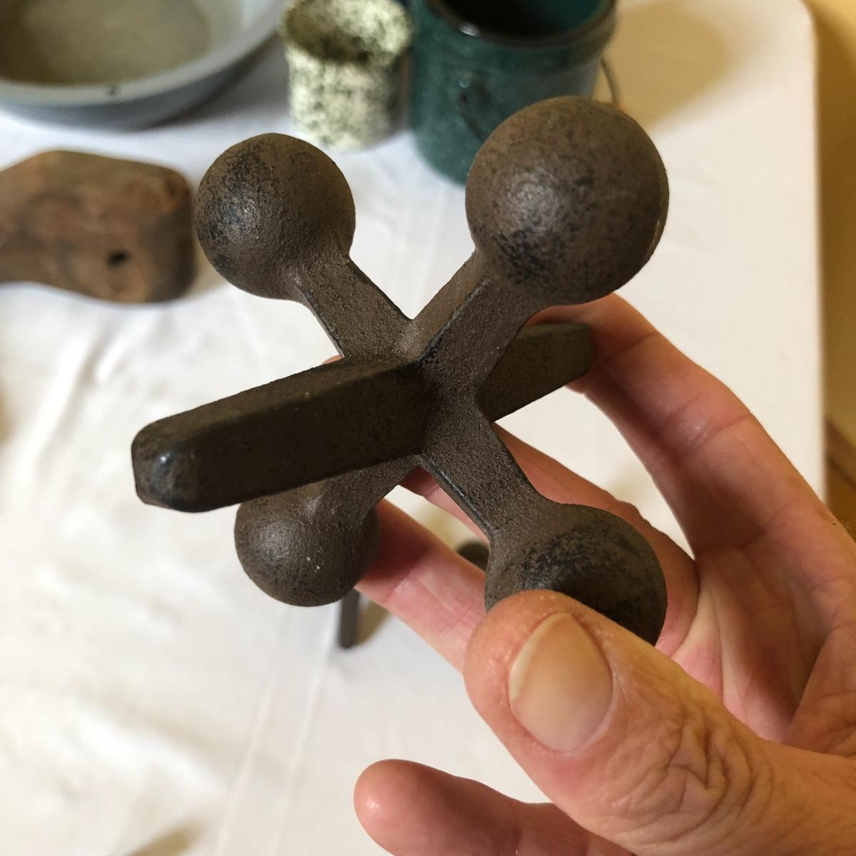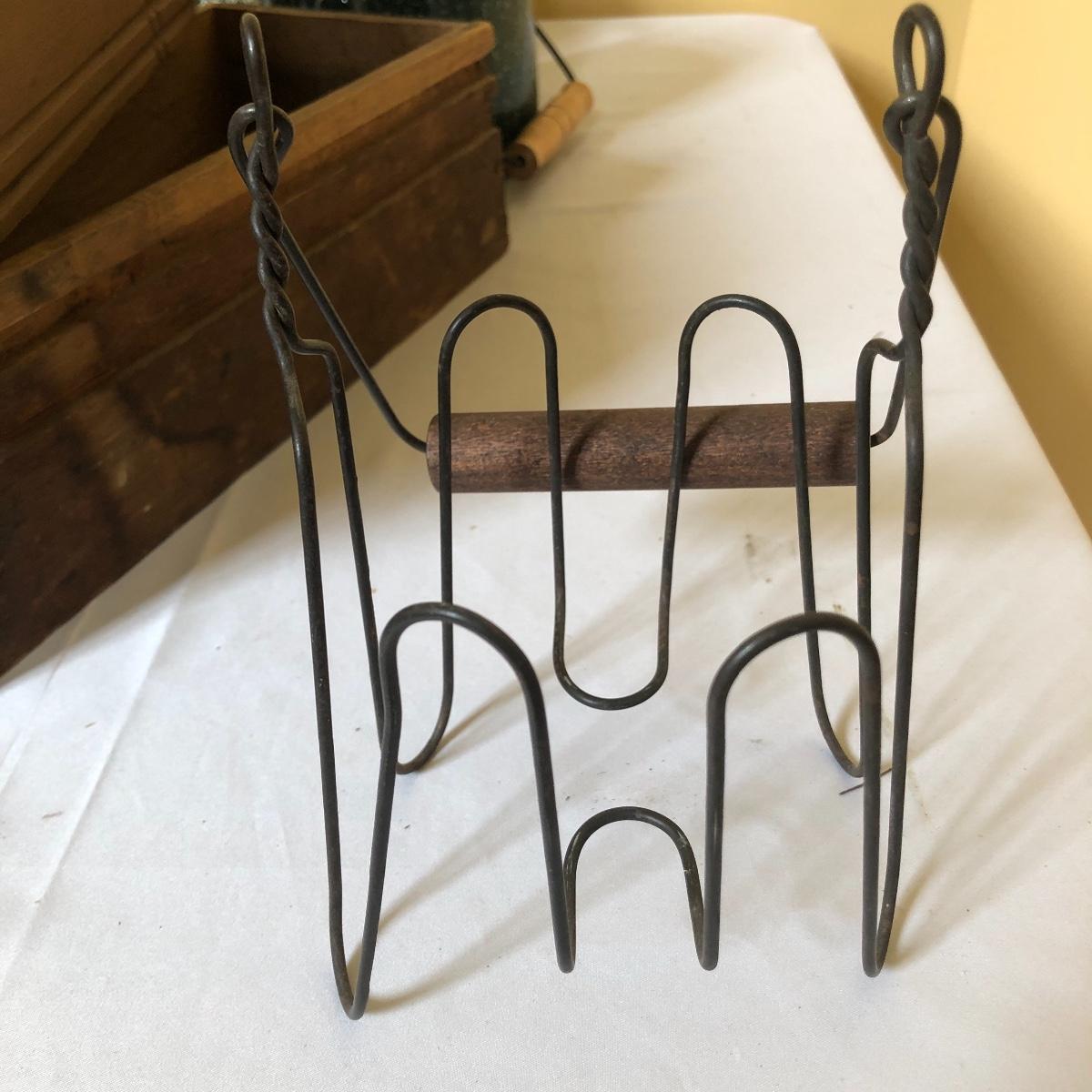 Mostly antique items in this lot with a few newer (made to look vintage) thrown in. The most unique of these items has to be the shoe-maker's wooden forms in various foot sizes and a primitive ball jar holder/carrier that is metal with a wooden handle. Two random antique drawers are included along with a large metal bowl that is pretty scratched from use. As for the newer items, there is a mini camping kettle that’s one inch high with mini cups and saucers, three rustic metal Jacks, two metal mugs (large one filled with marbles), a handled canister and a maroon speckled jug (this was added to the lot later and is not in the main image).
