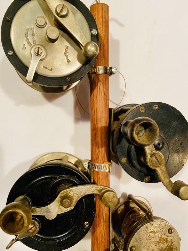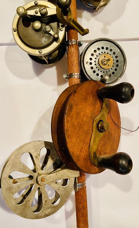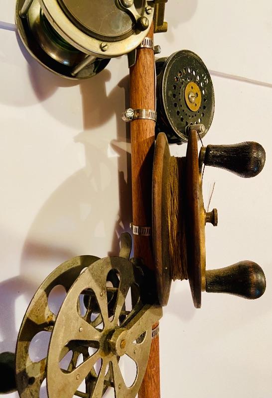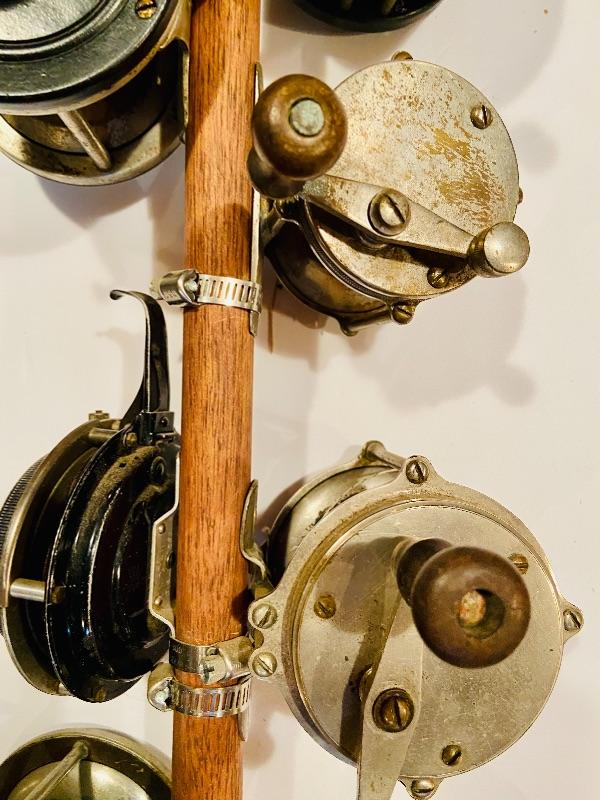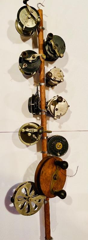 10 different vintage fishing rods. These have been mounted on a rod to hang and display. They are in various conditions. MHW Please see all pictures for content of the lot, condition of the lot, and measurements if taken. Pictures are the best representation of the items listed and items are untested unless indicated in description. Thank you for looking and have fun bidding!