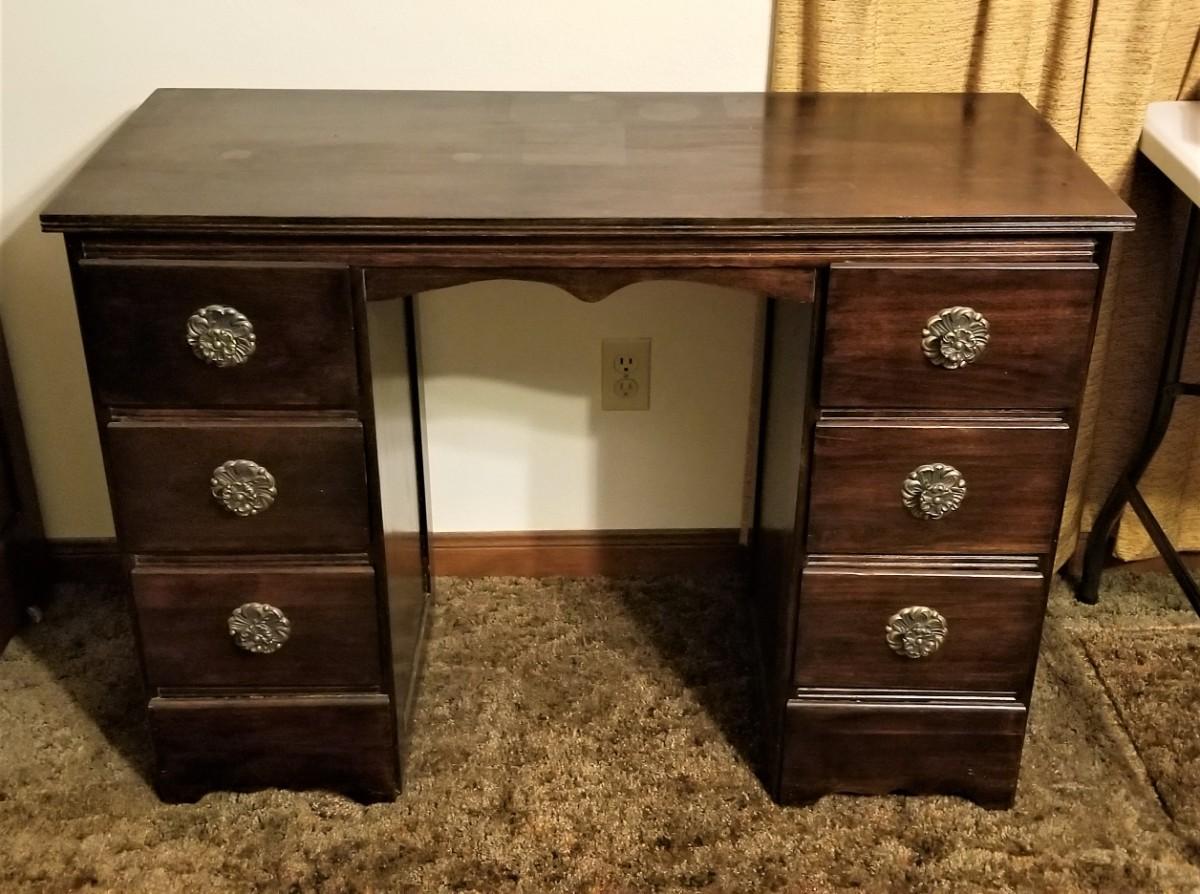 Lot #186  Vintage Knee-Hole Desk - 6 drawers