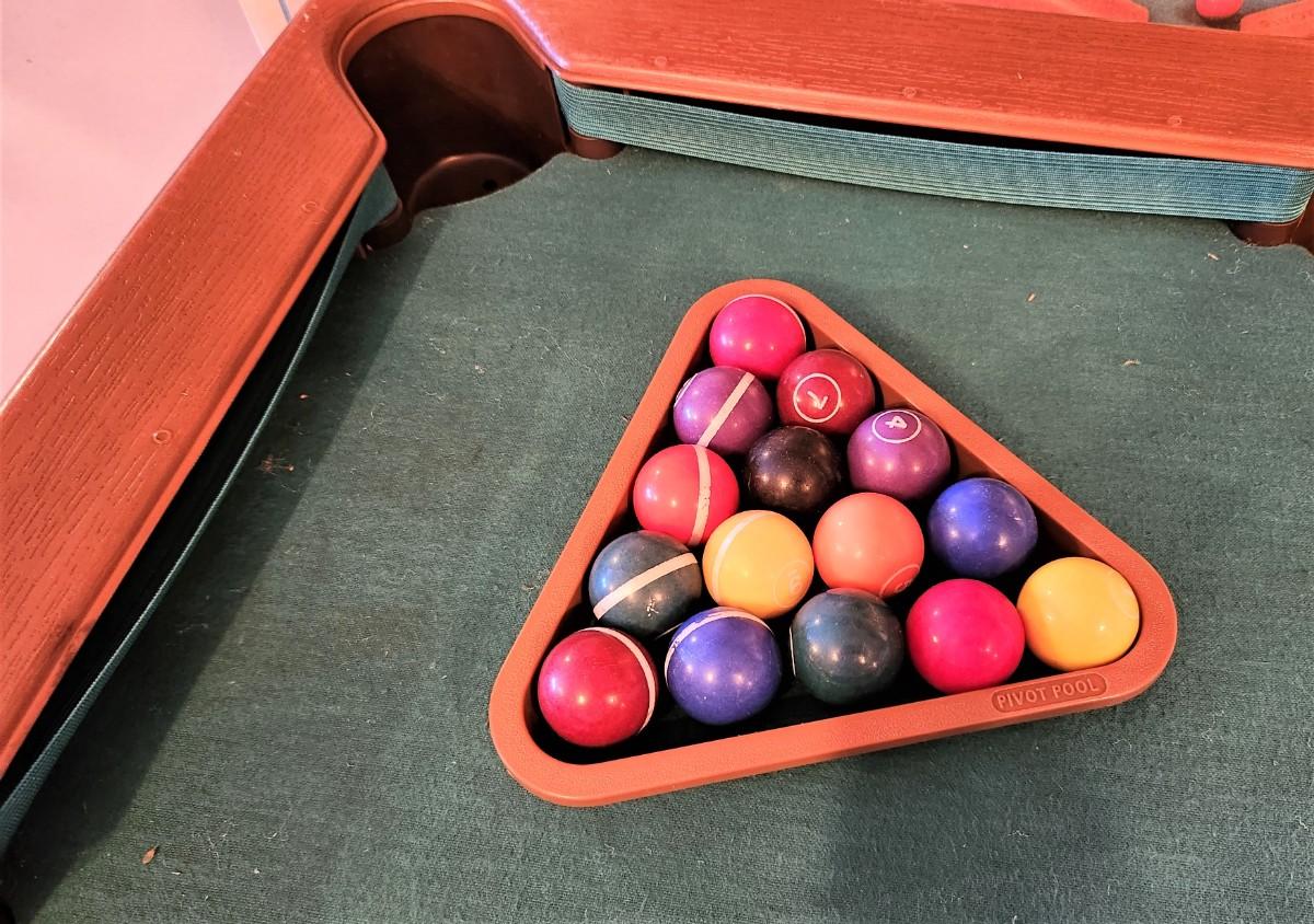 Endorsed by Lucille Ball, no less! Complete in box with instructions. Pivot spring works fine. You will find people selling individual balls on ebay. Game table is 32" long, 18.5" wide. Very good condition.