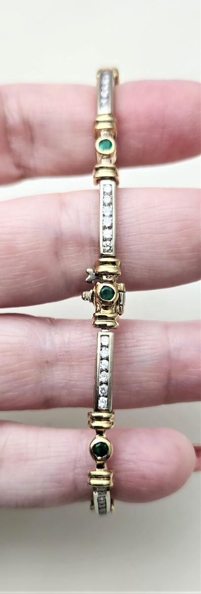 Lot #186J  14kt Yellow Gold, Diamond & Emerald Bracelet