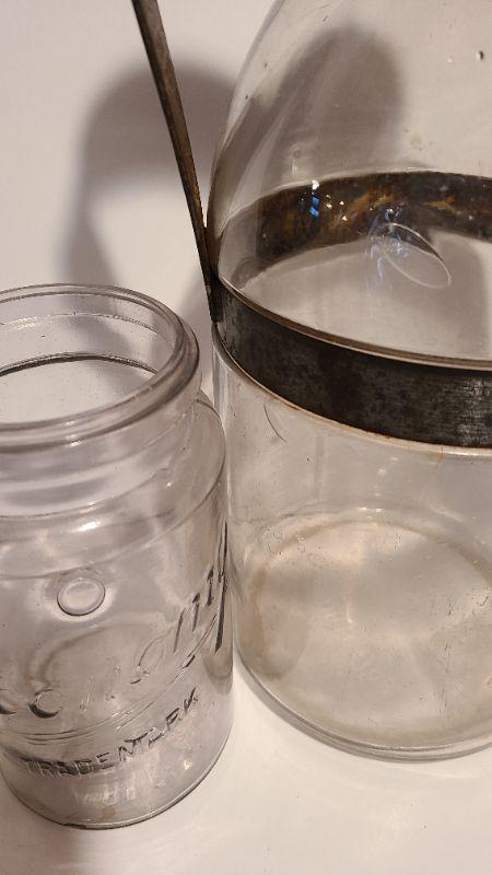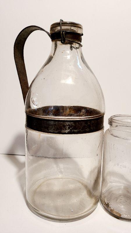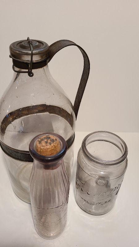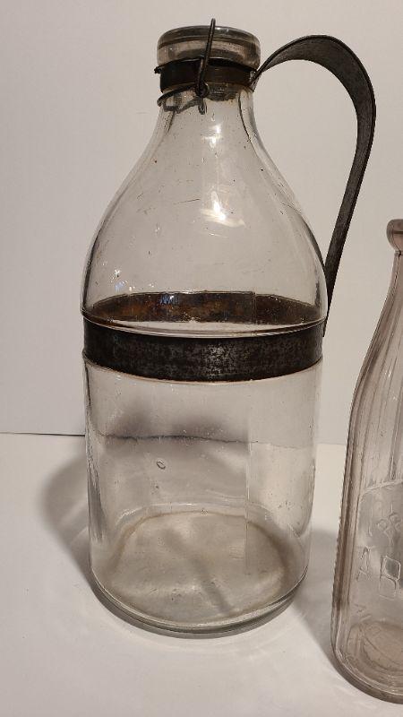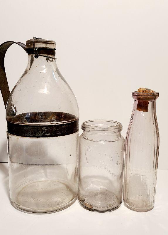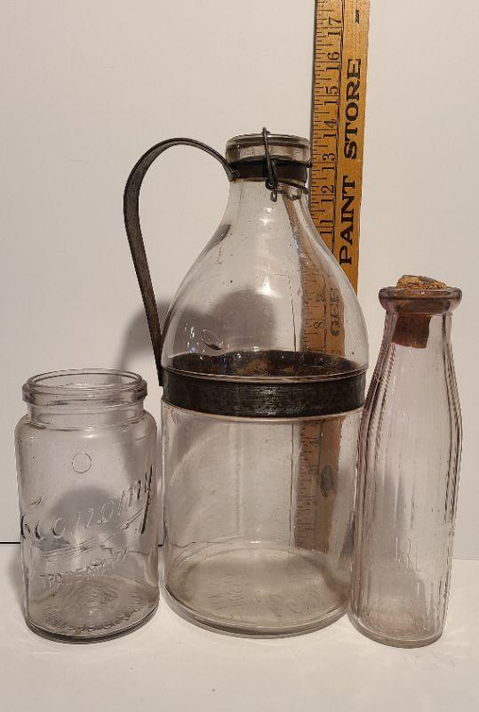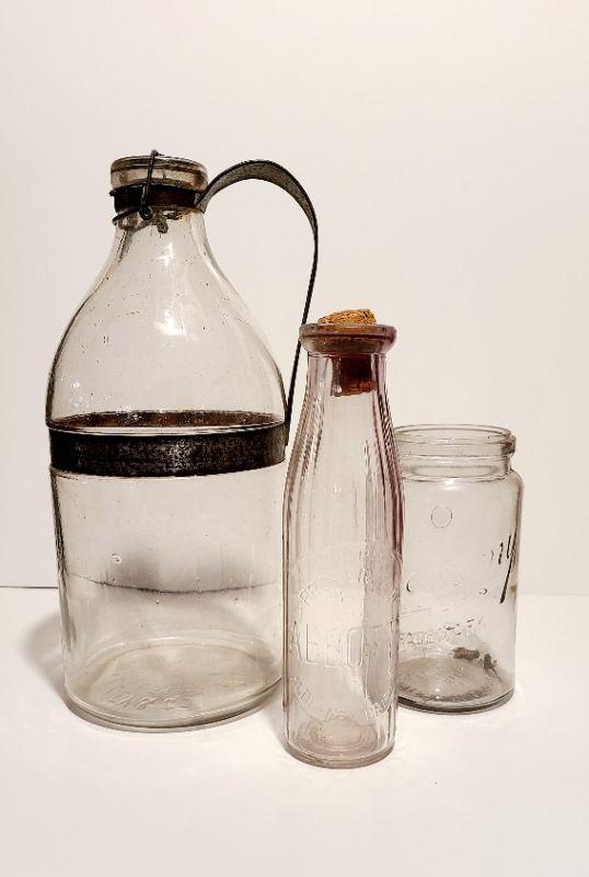 Lot 187A: 3 pieces incl. a Gallon sized 1898 AG Smalley Glass Tin Top Milk Bottle