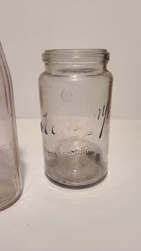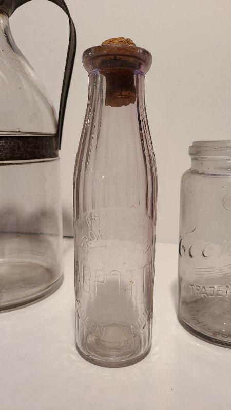 AG Glass Milk Jug is the highlight of this lot, extemely rare, measuring 14 inches tall, holds a gallon! You may find a few half gallon sizes out there and quarts, but this one is a true rarity! Also included in this lot: A pale purple Abbott milk bottle and Economy Trademark Jar. Each lot is unique and you will need to see all pictures. Pictures have been taken from all side to see condition and markings. What you see in the pictures is the actual content of the lot and the pictures are the best representation of the bottles. All bottles are sold-is according to the pictures. For further information please google the makers marks for age.