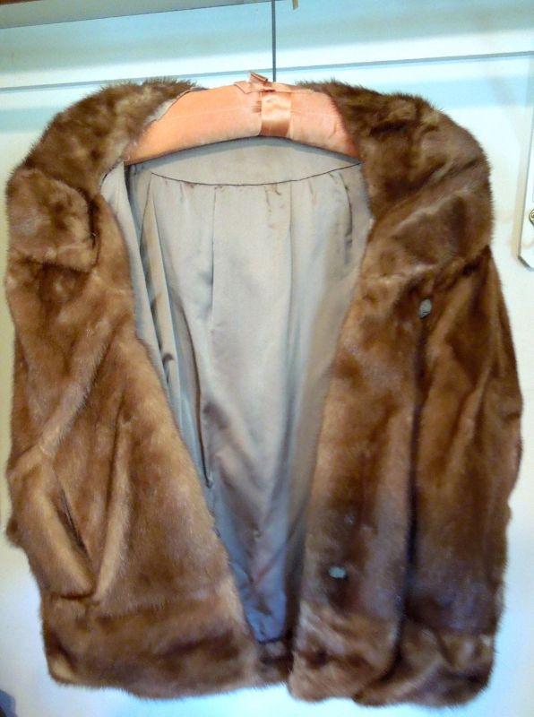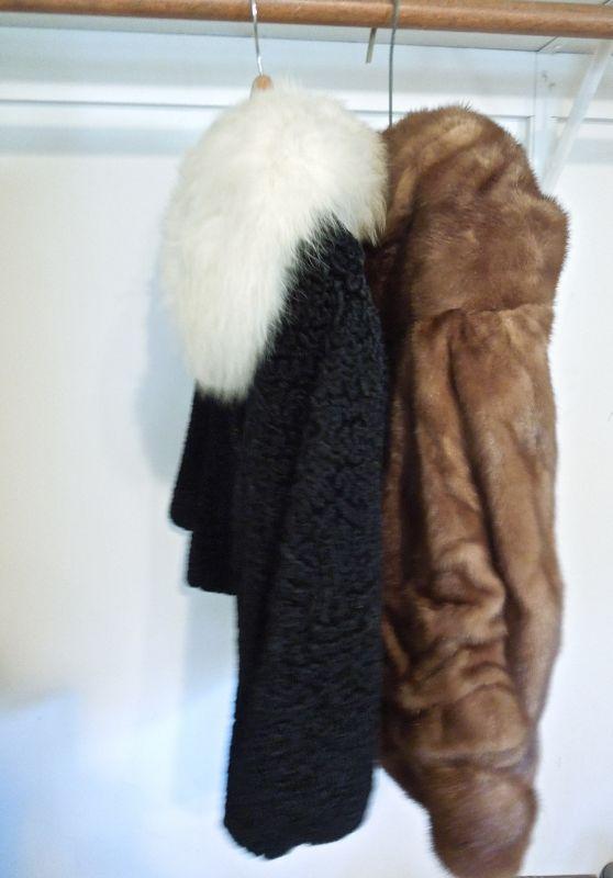 Lot 187: 60's Mink Stole, Hat, Faux Lamb Jacket and Satin Hanging Bag