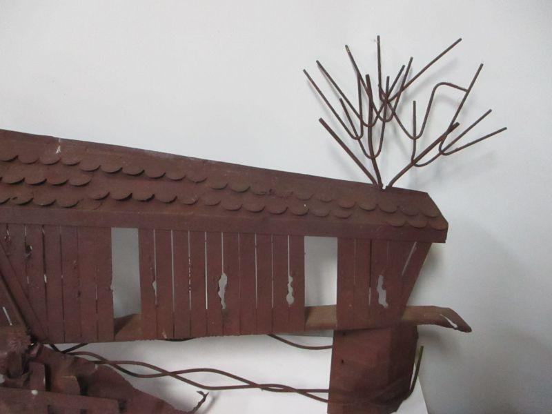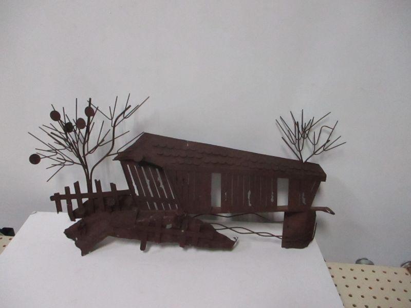 Lot 187 - Old Vintage 1974 Enesco Imports Covered Bridge Metal Art Wall Sculpture