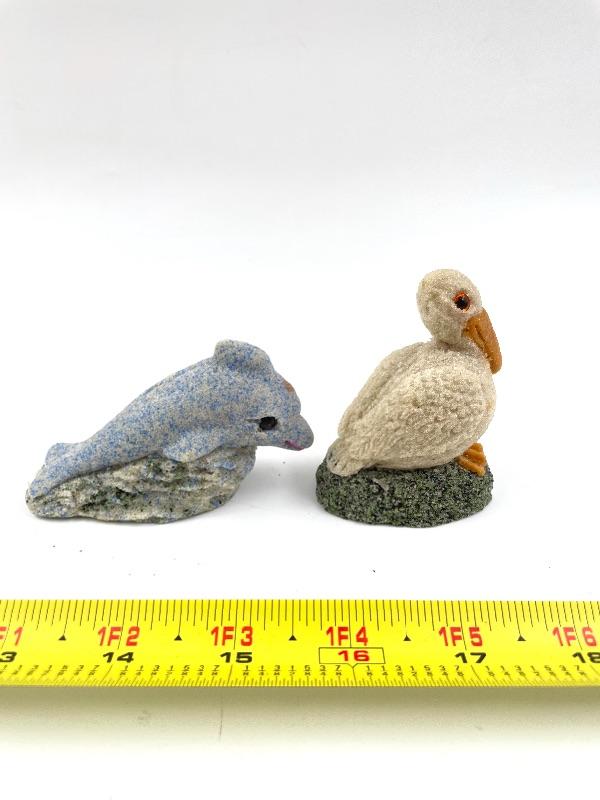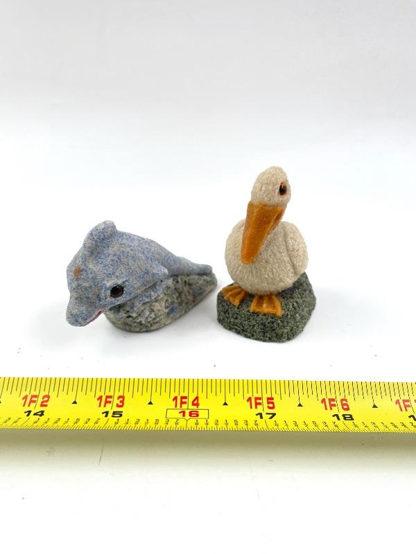 AMERICAN STONE ART DOLPHIN AND PELICAN FIGURINES (LOT #187)