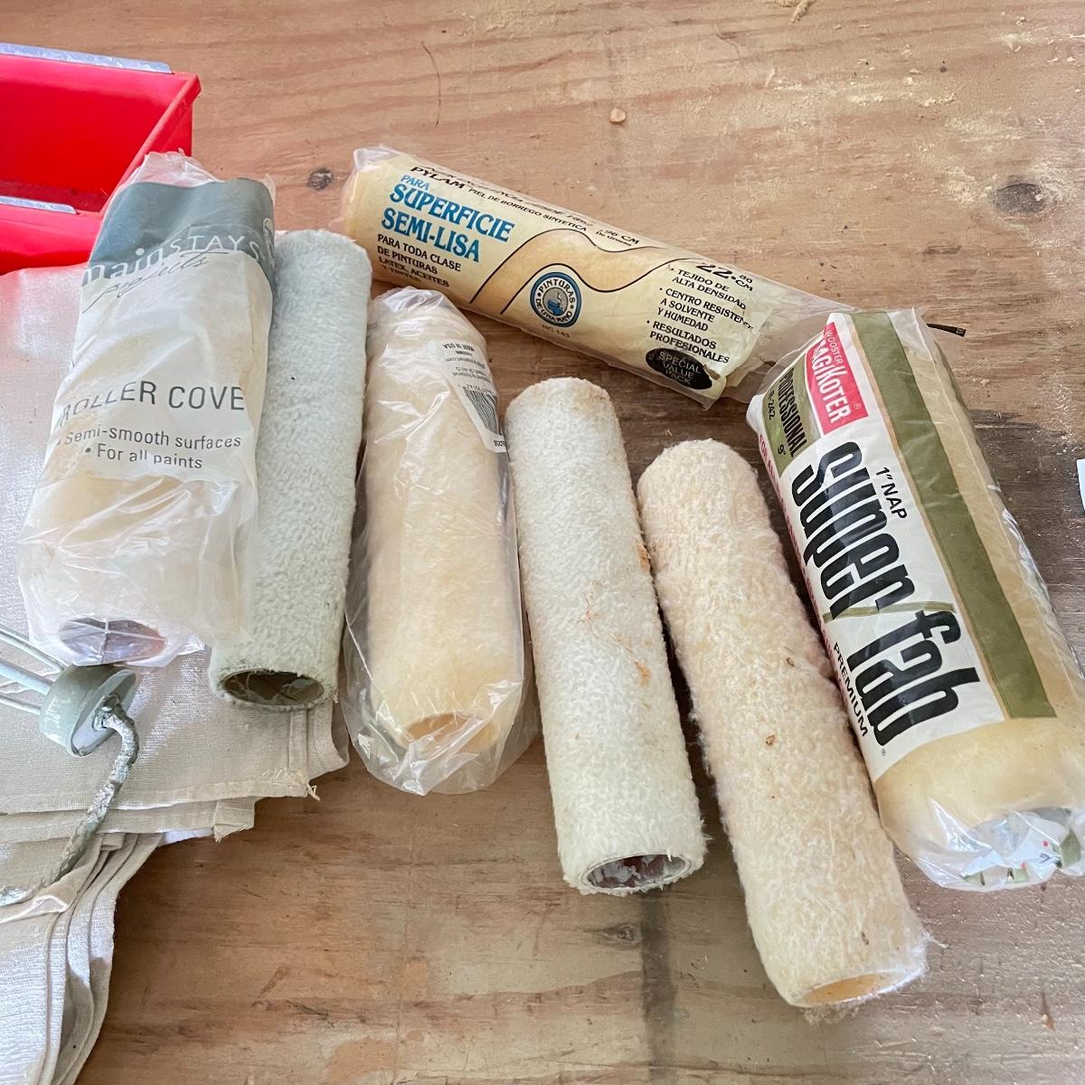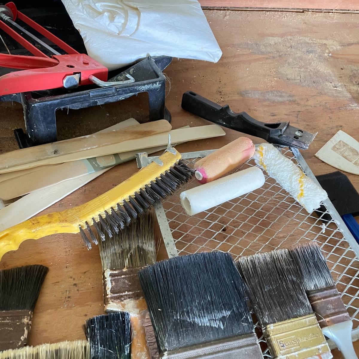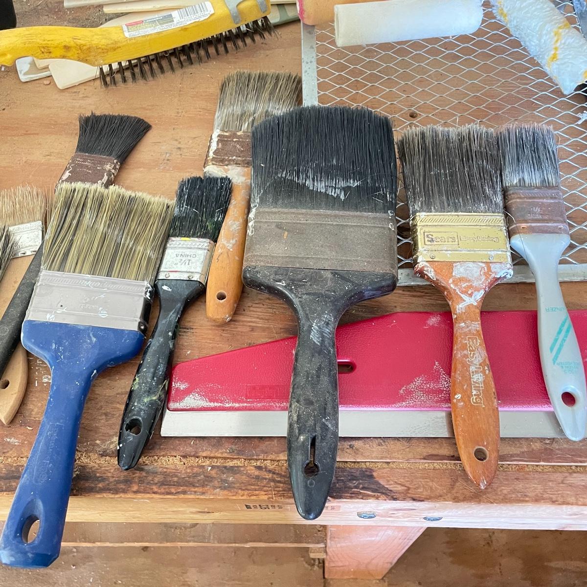 All the tools you need to freshen up your walls! Plenty of 9” rollers, a good selection of various sizes paint brushes, all used, but in good shape. A Wagner paint sprayer turned on when tested. Lot also includes drop cloths, both cloth and fabric, three paint trays, scrapers, sander pads and more! See images. Local pick up only.