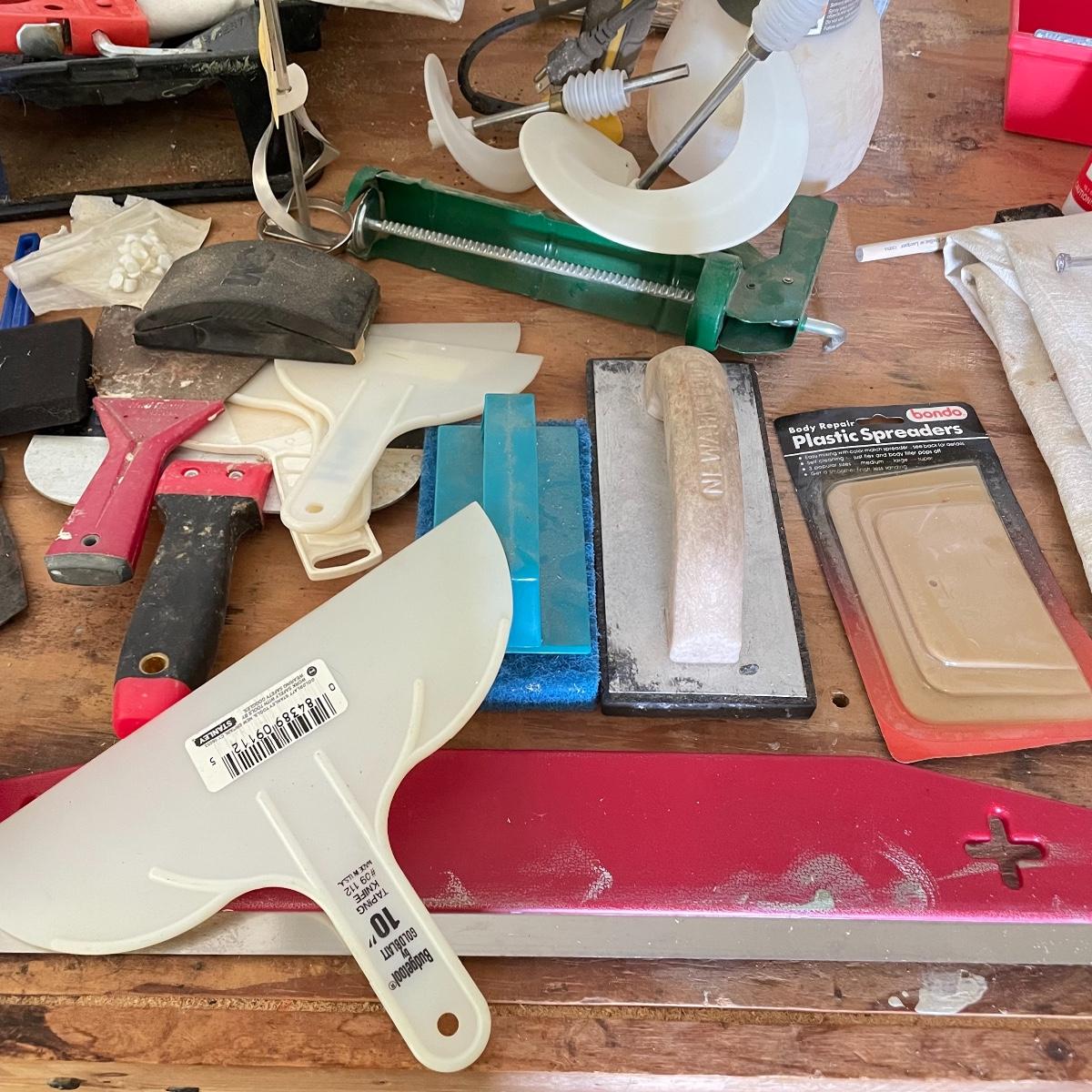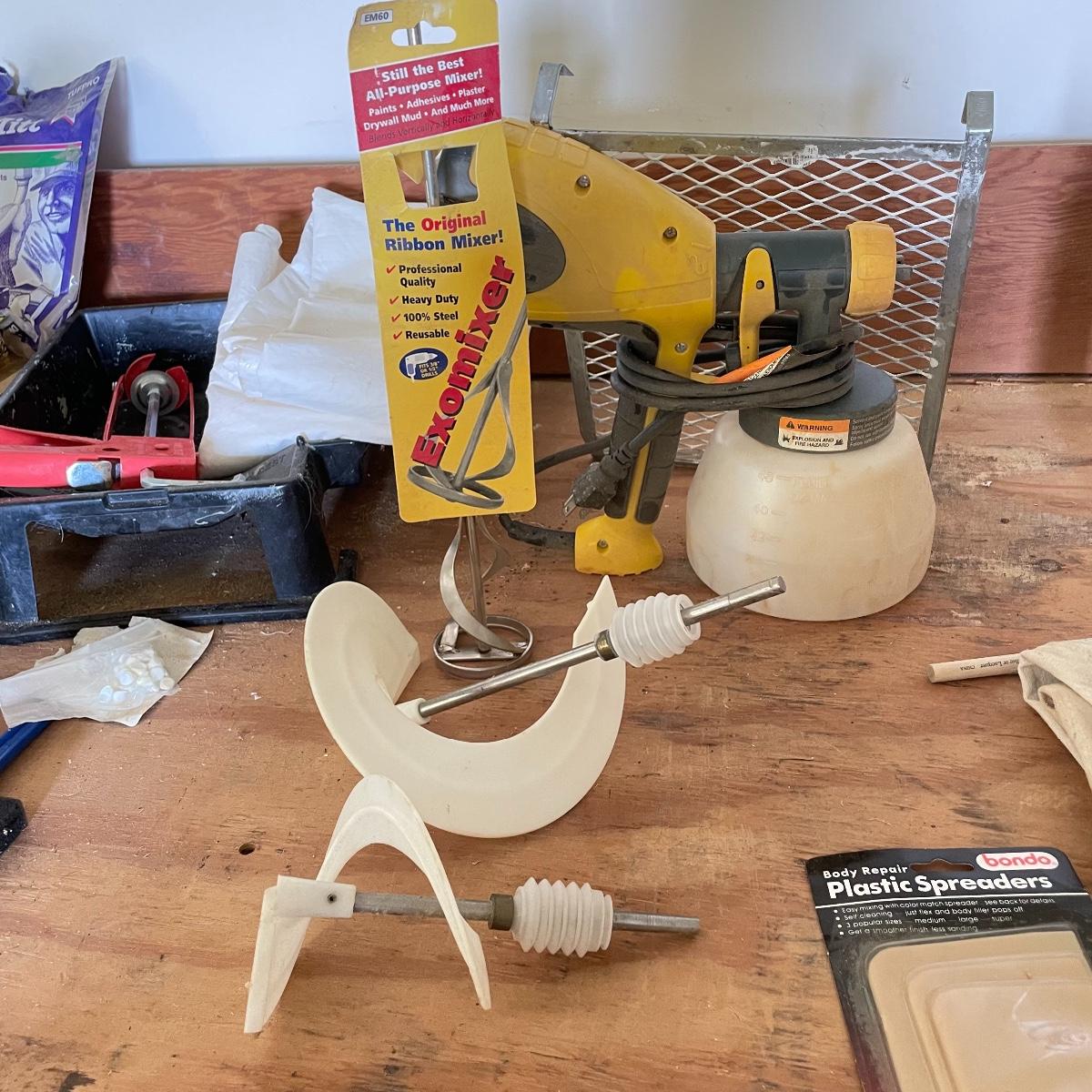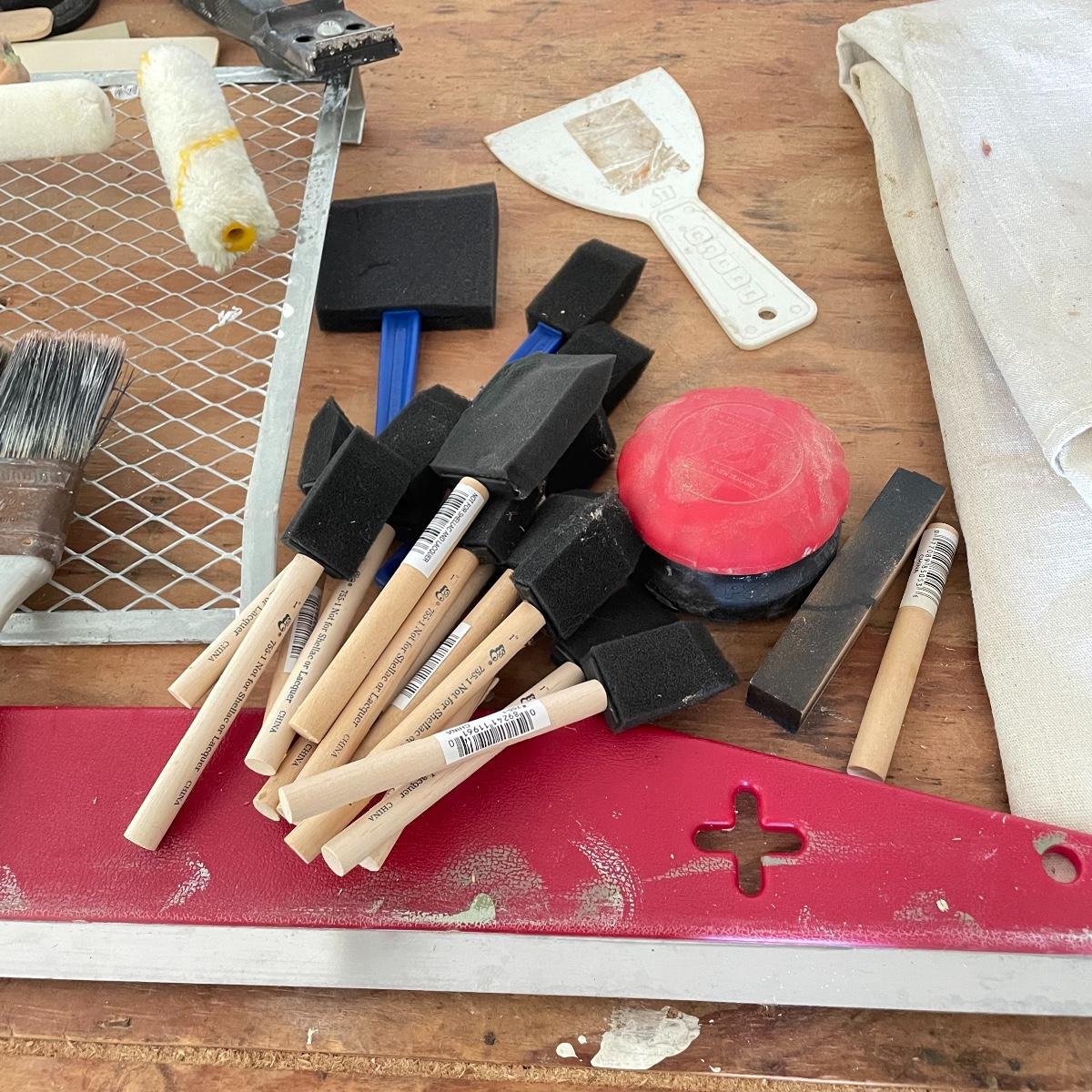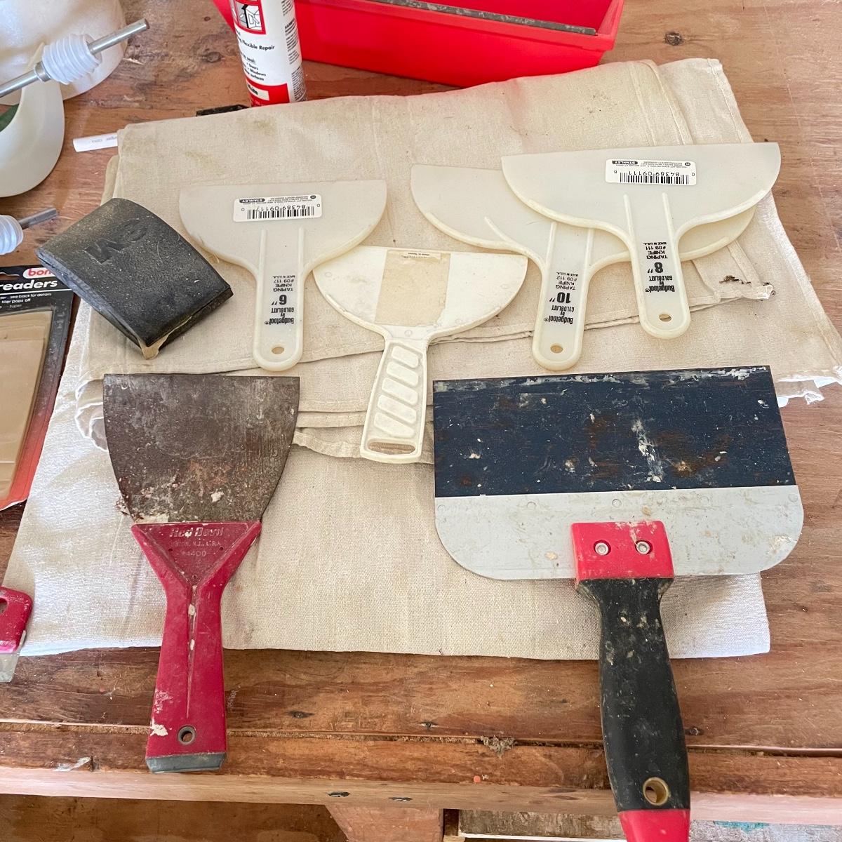 All the tools you need to freshen up your walls! Plenty of 9” rollers, a good selection of various sizes paint brushes, all used, but in good shape. A Wagner paint sprayer turned on when tested. Lot also includes drop cloths, both cloth and fabric, three paint trays, scrapers, sander pads and more! See images. Local pick up only.