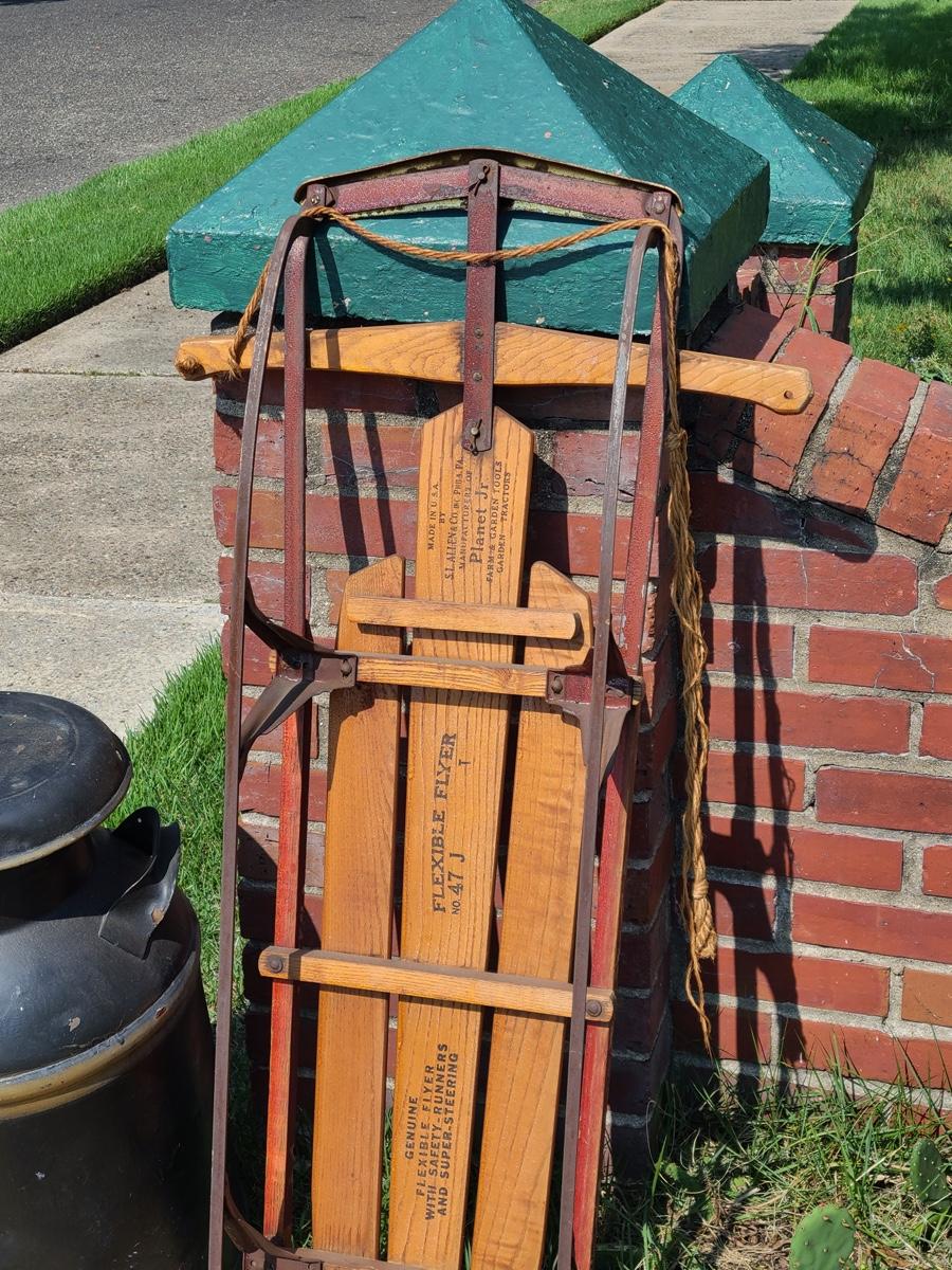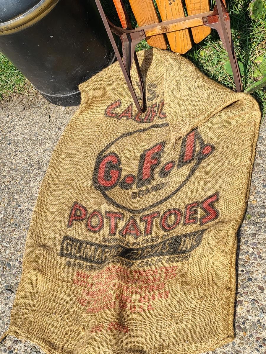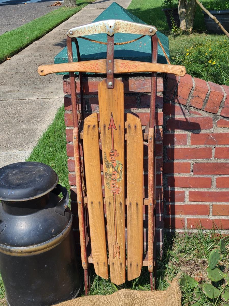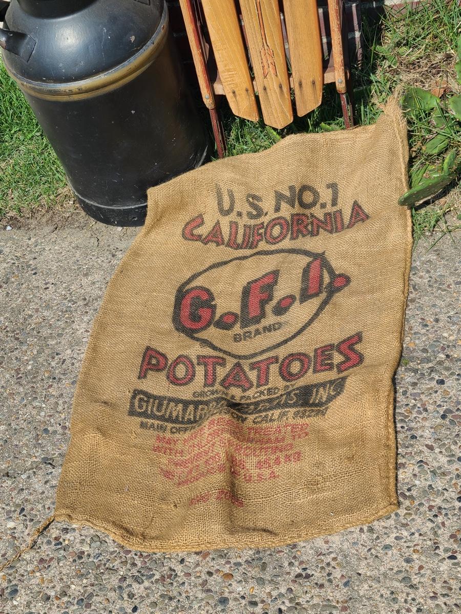 Lot 187G: Vintage Flexible Flyer, Milk Can and Burlap Potatoe Sack