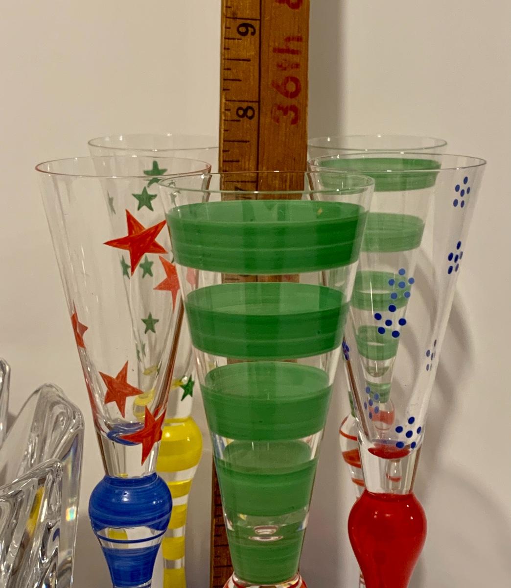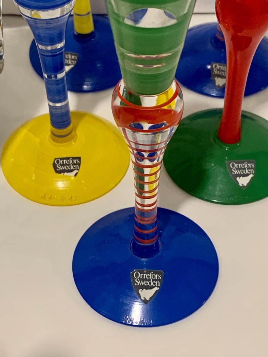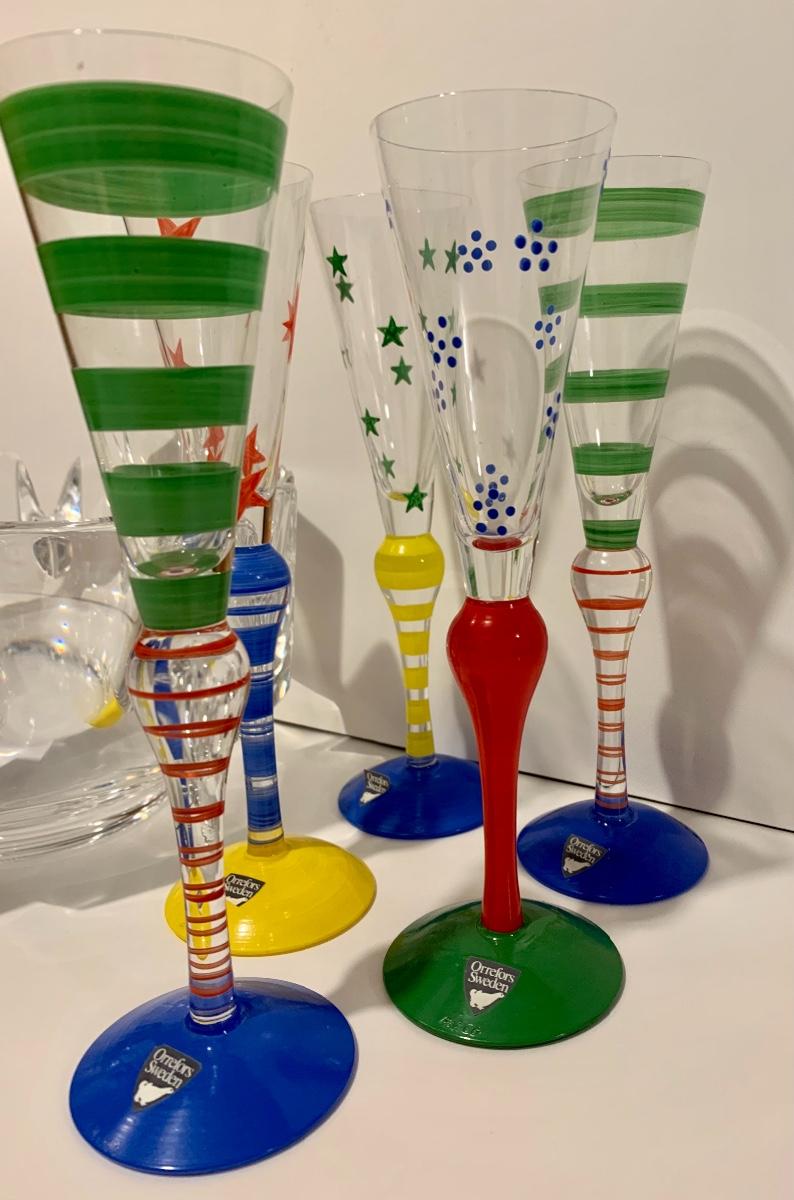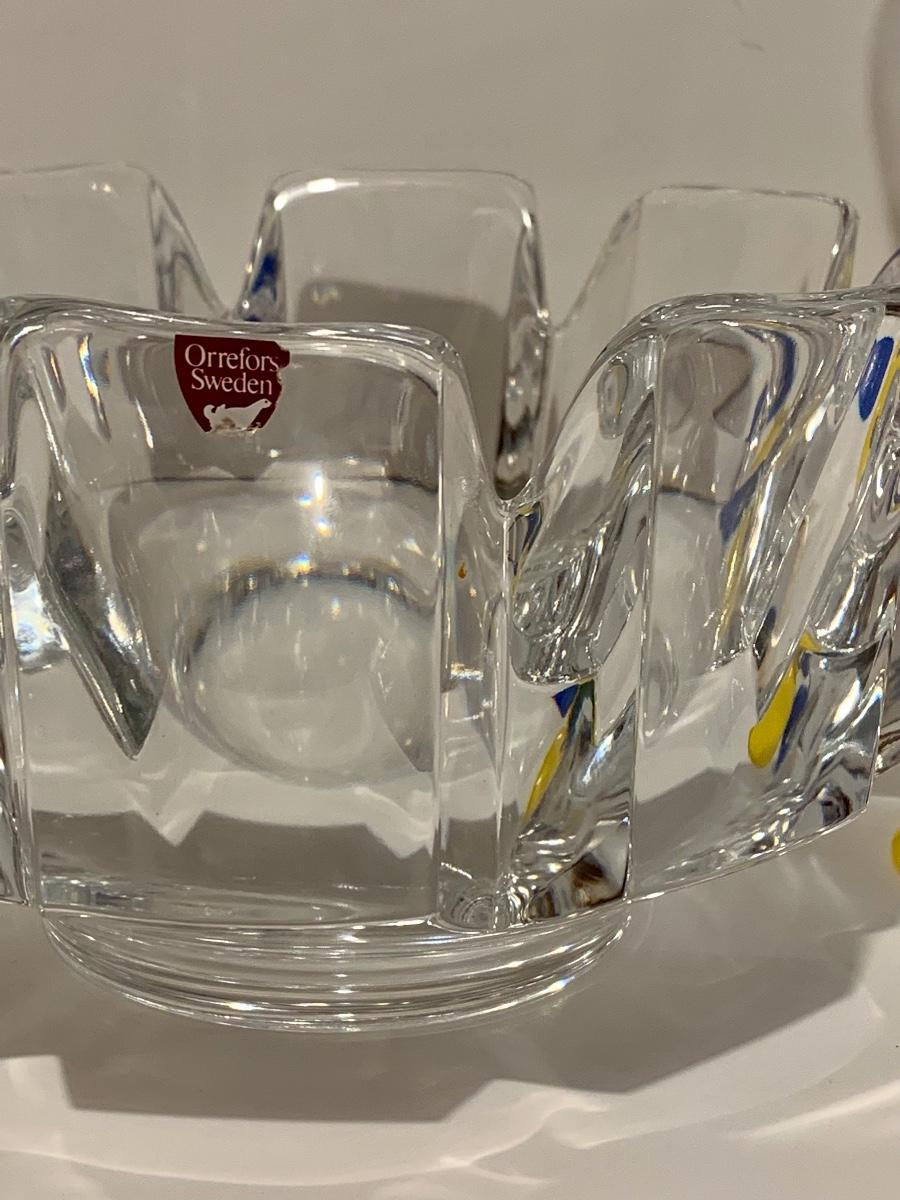 Lot 187: Vintage New Orrefors "Clown" Schnapps/Cordial Glasses & Crystal Bowl