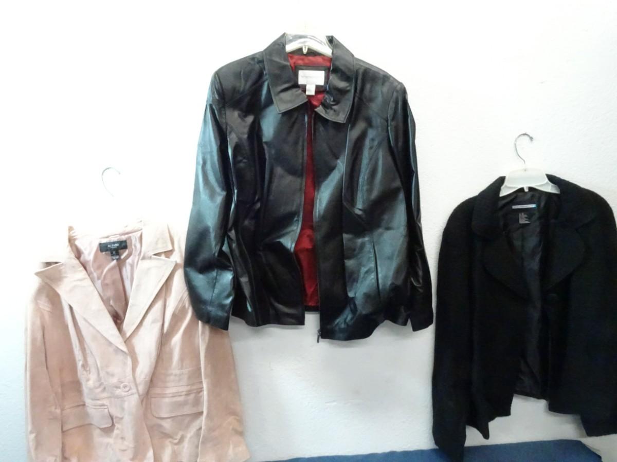 LOT 187. THREE LADIES COATS/JACKETS ALFANI, WORTHINGTON AND REQUIREMENTS BRANDS