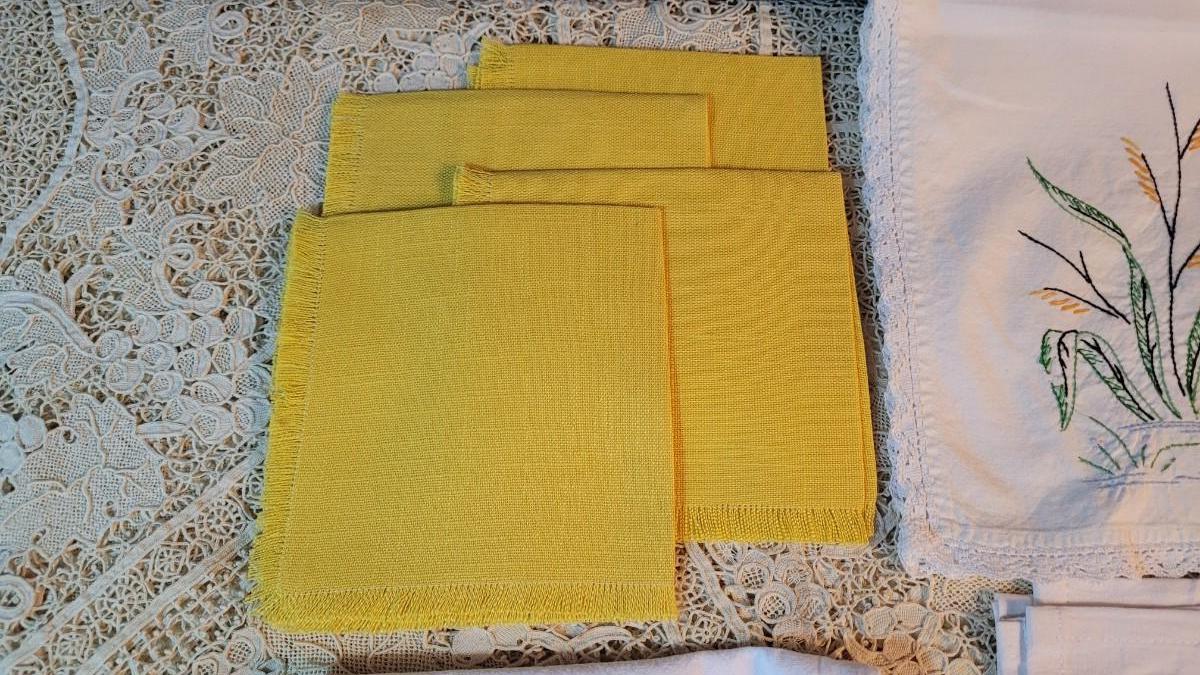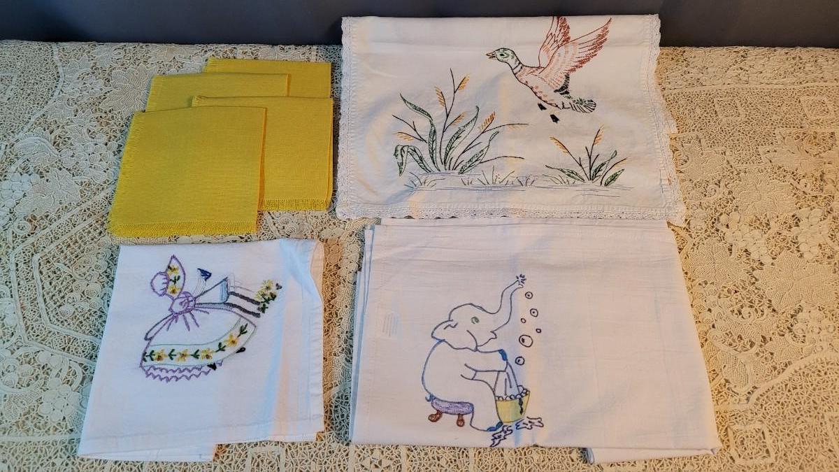 Lot 187: Needlepoint Kitchen Towel and Yellow Napkins