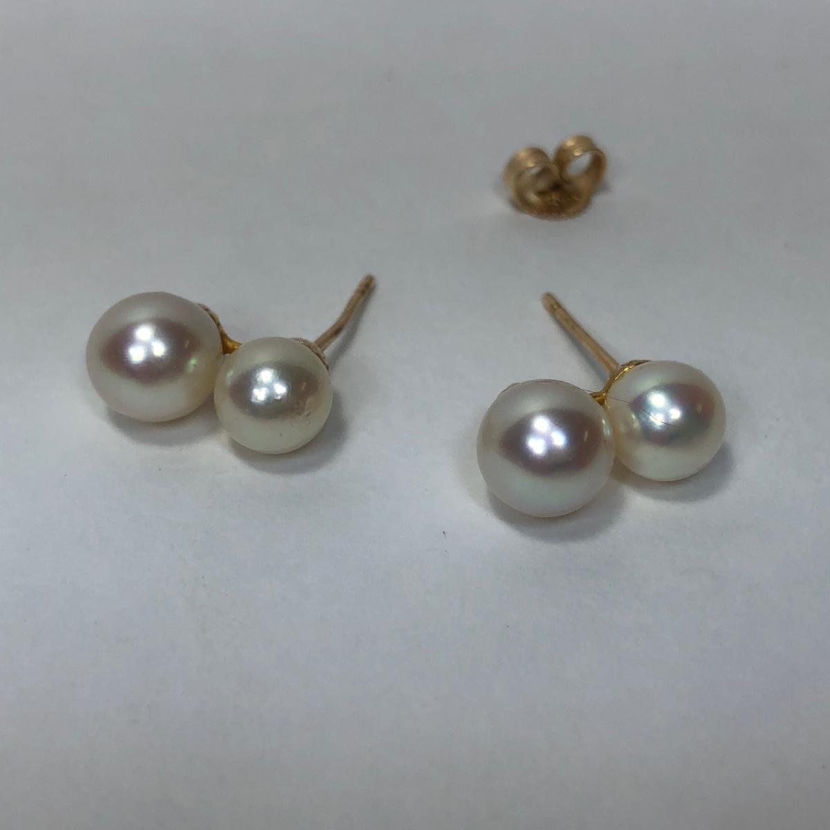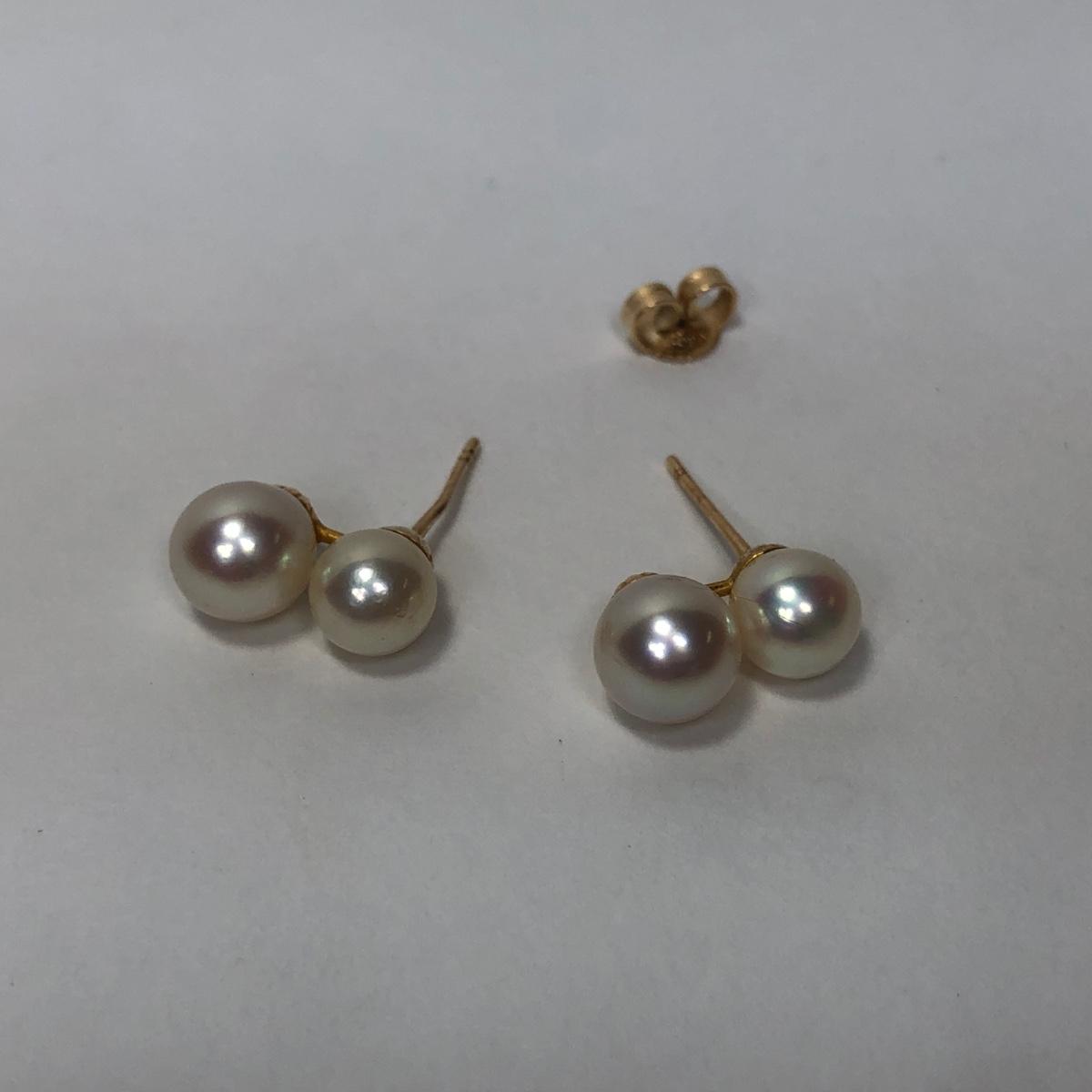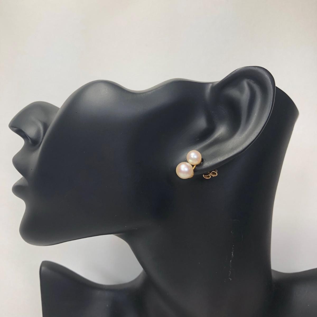 LOT 187: 14K Gold Double Pearl Earrings - 2.38 gtw