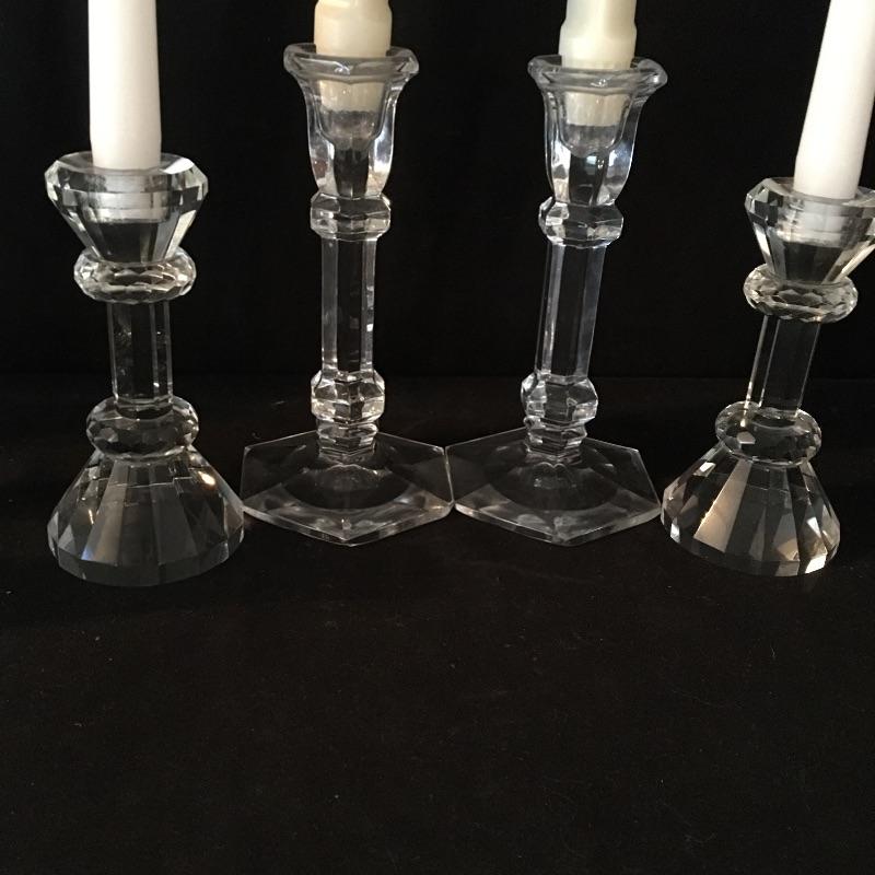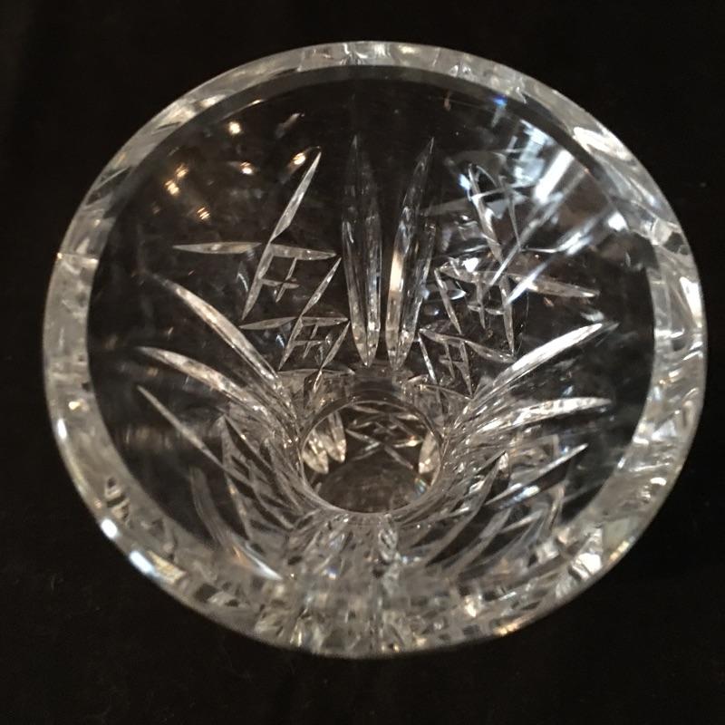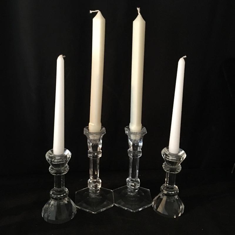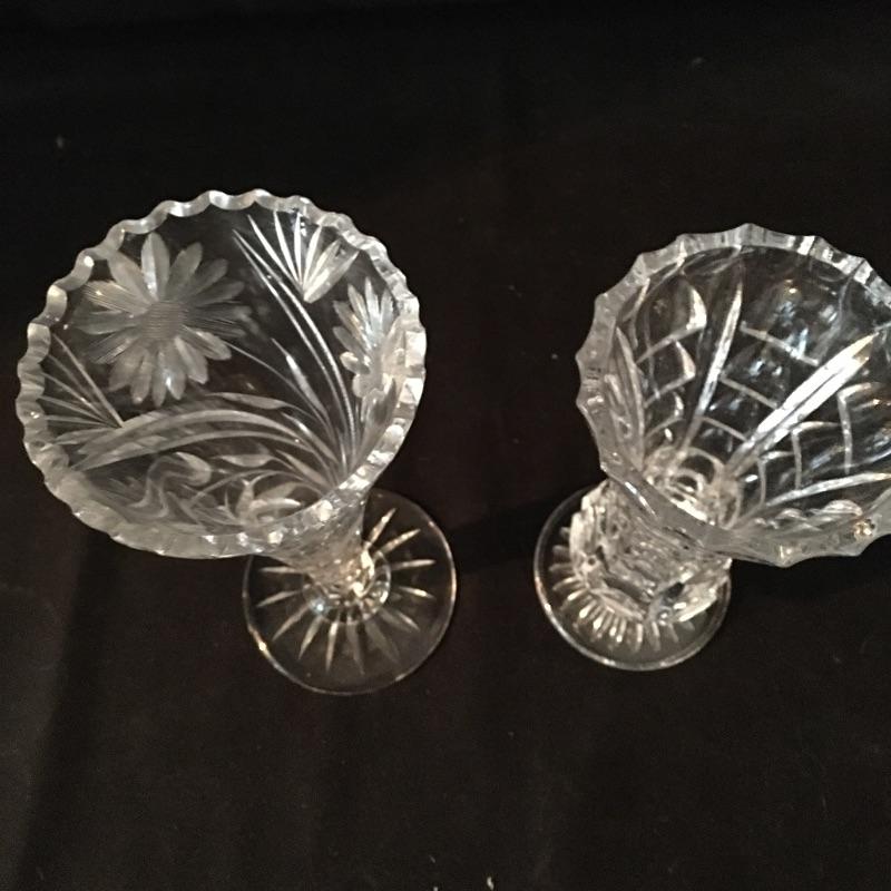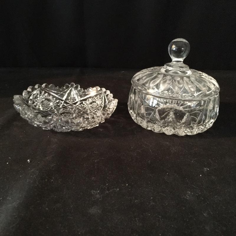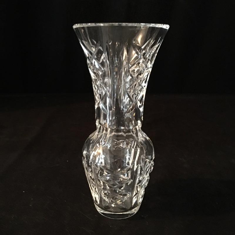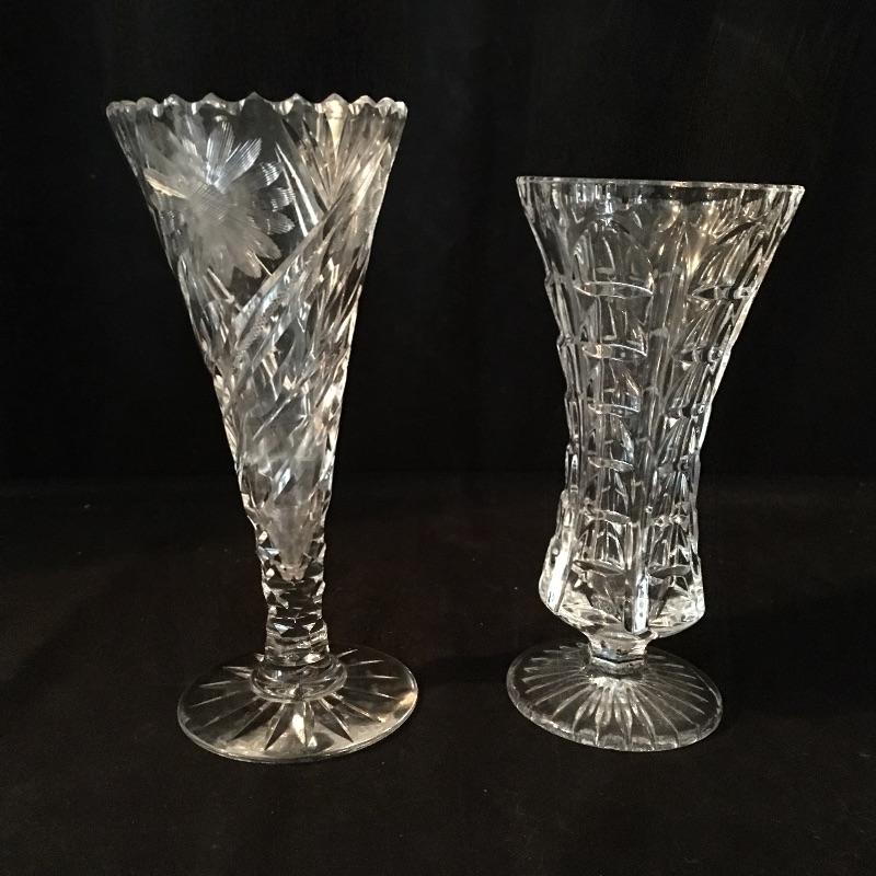 This array of formed glass includes a lamp, Six candle holders, salt and pepper shakers, five vases, bell, water jug with glass, seven glasses, cake plate and two bowls. Lamp measures 8”D x 14” tall and worked when tested.