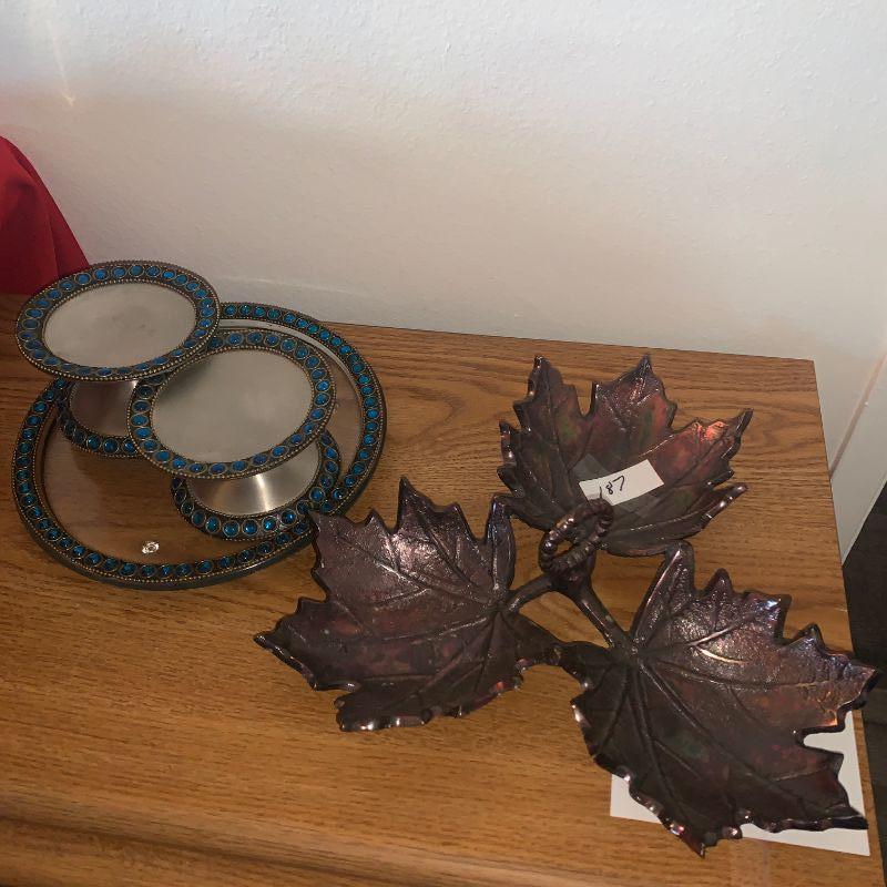 Lot 187  beaded candle holder, candy dish