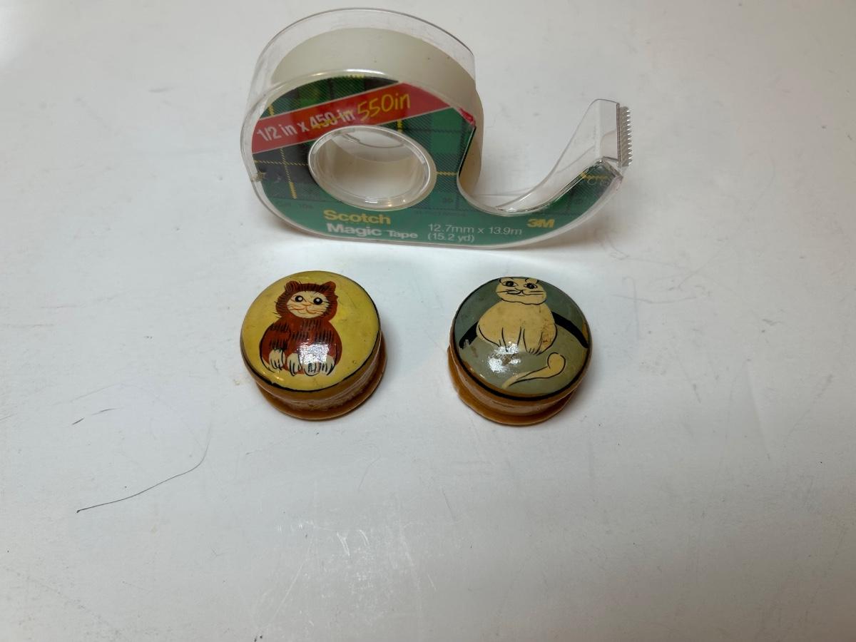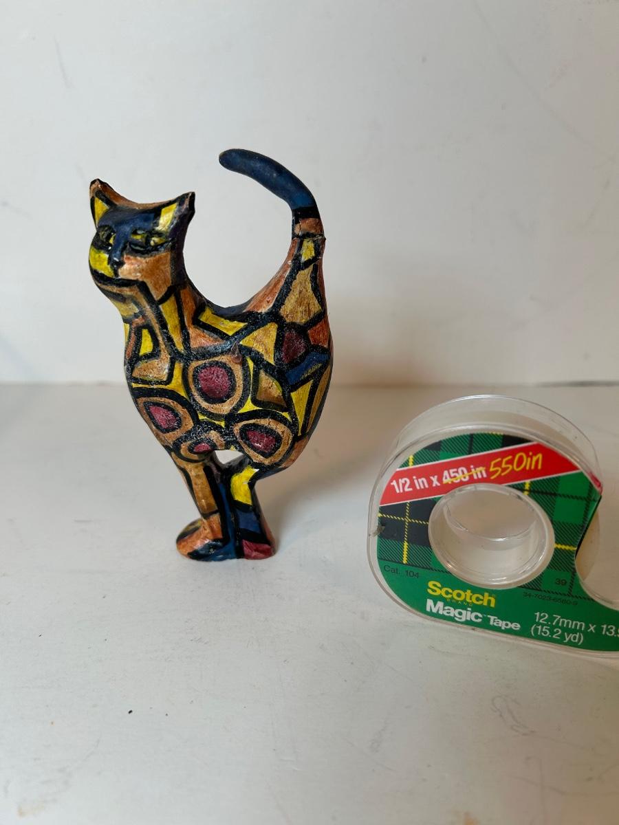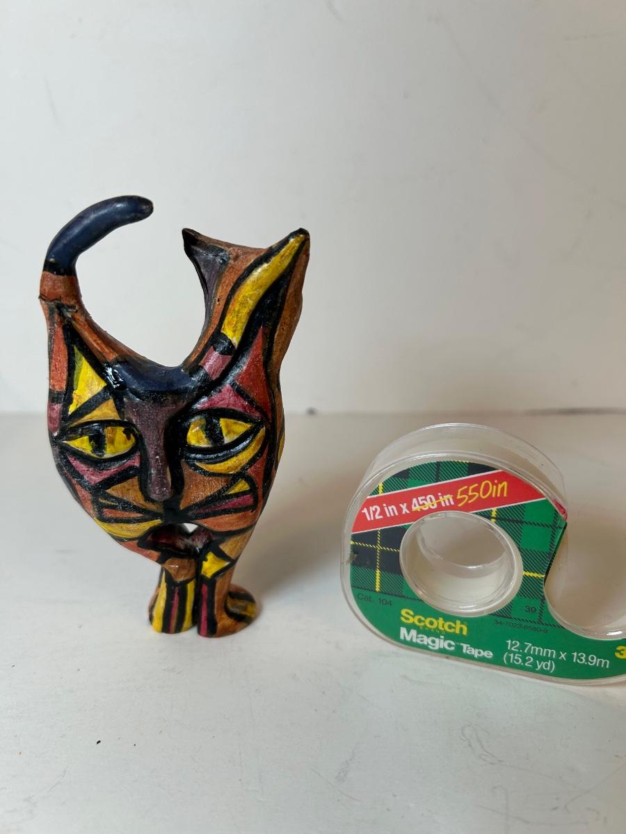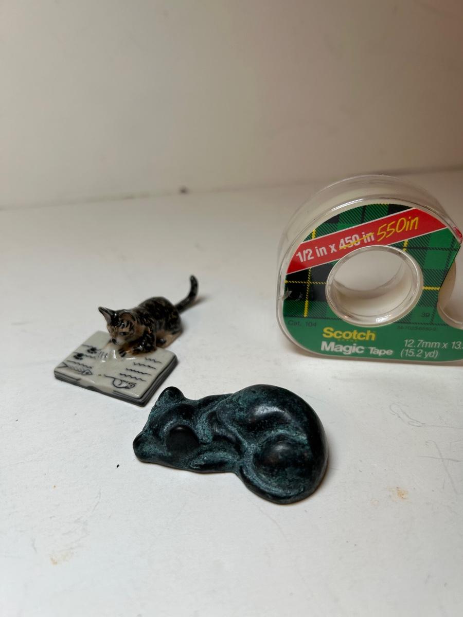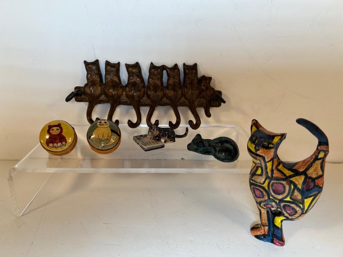 Metal cat screw in the wall key holder, cat figurines and 2 round cat painted things