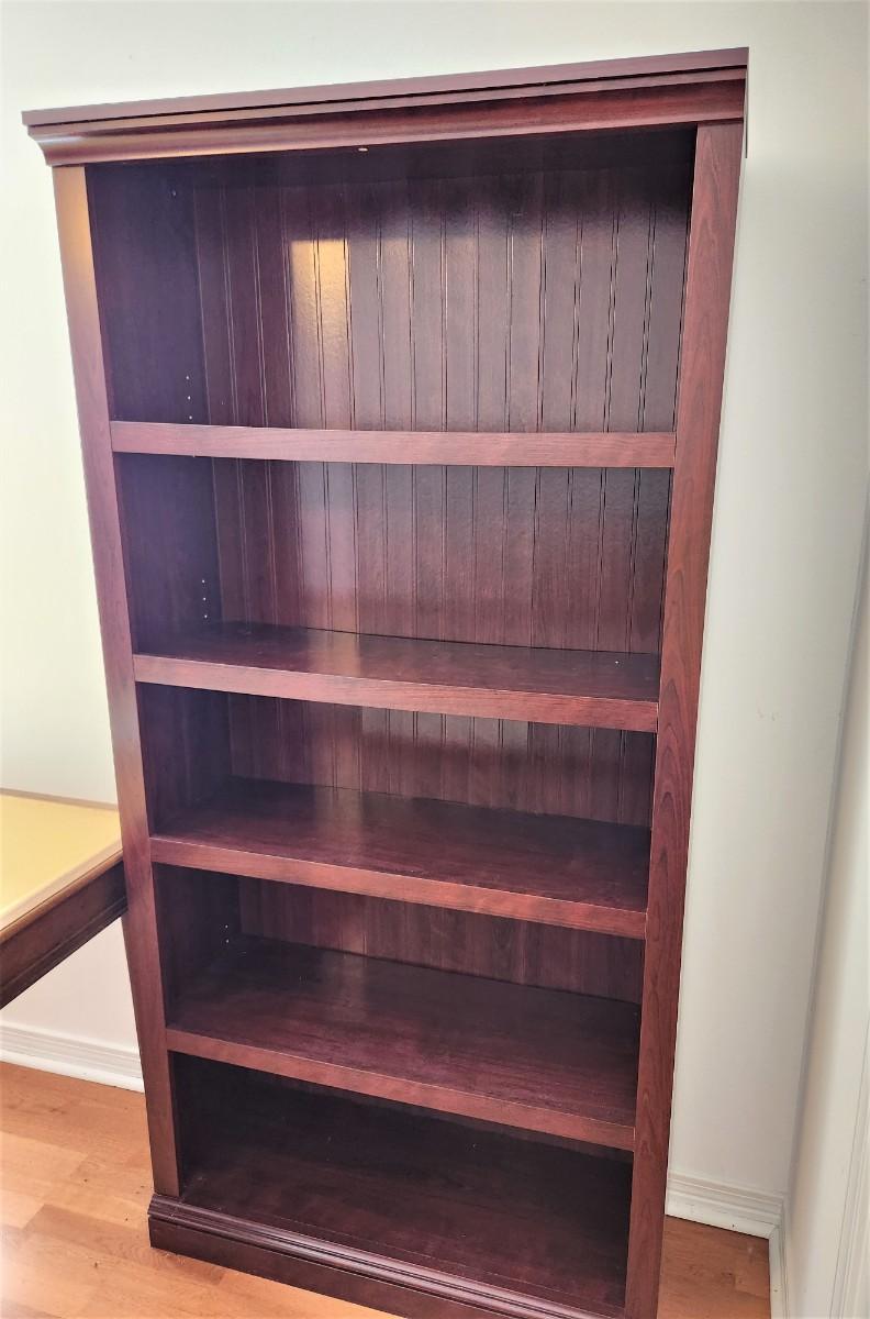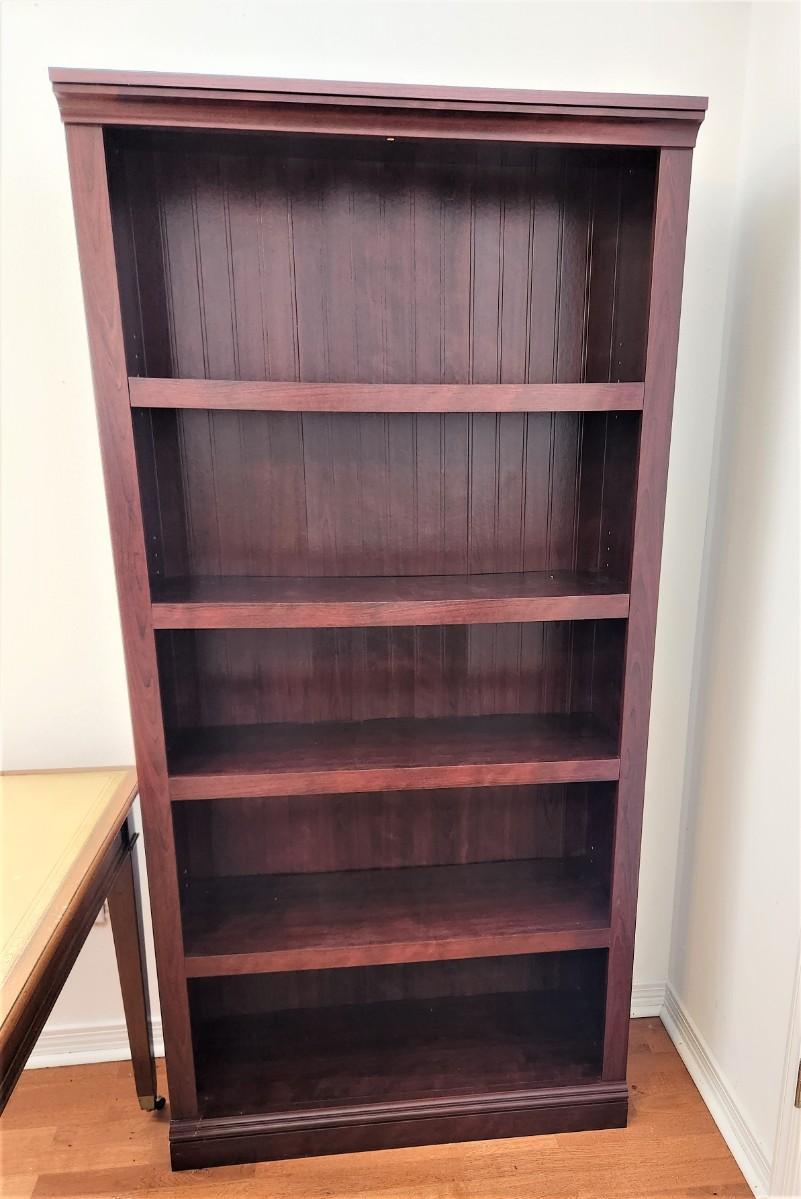 Nice contemporary bookcase with 5 adjustable shelves - good condition. 6 feet tall, 14" deep, 35.5" across.