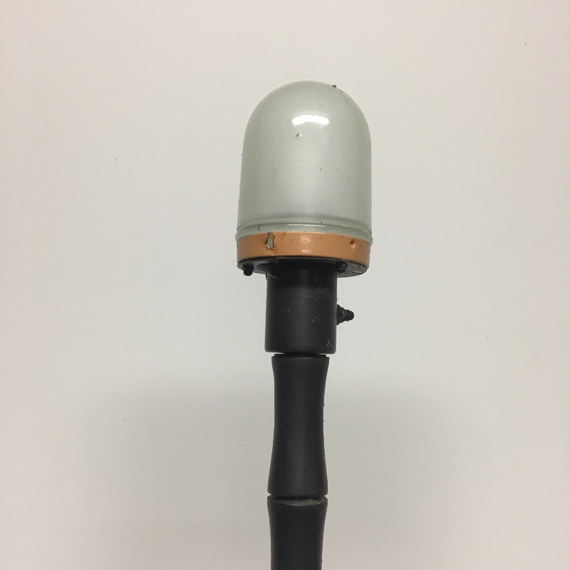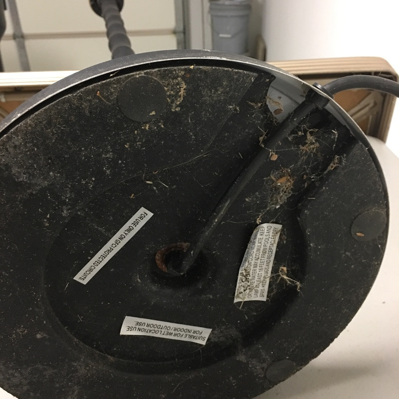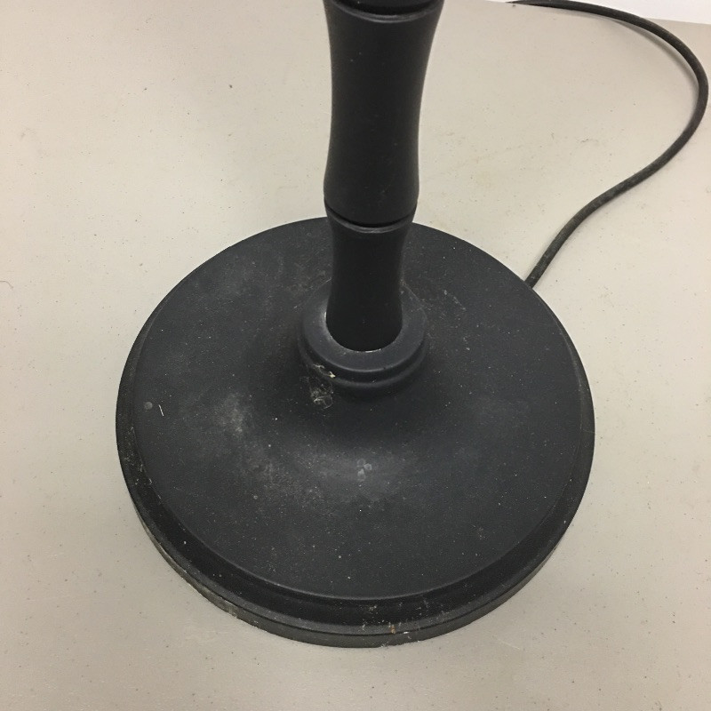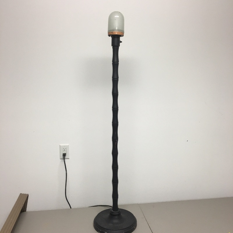 Utilitarian floor lamp. This unique lamp will look great in a loft or garage type space. Lamp base measures 12”D and lamp measures 55”tall.