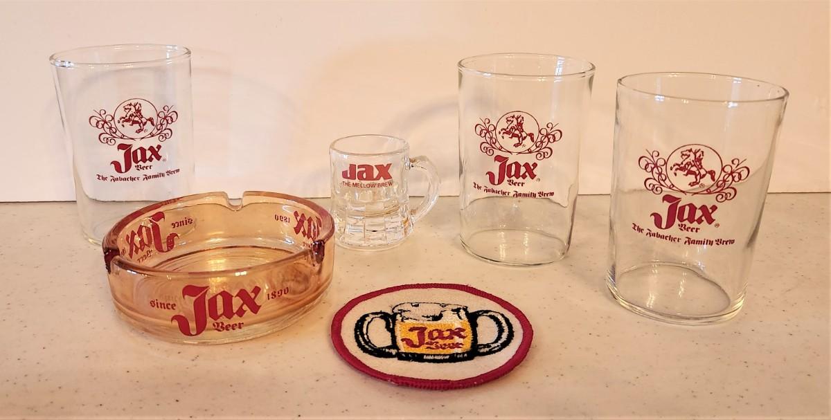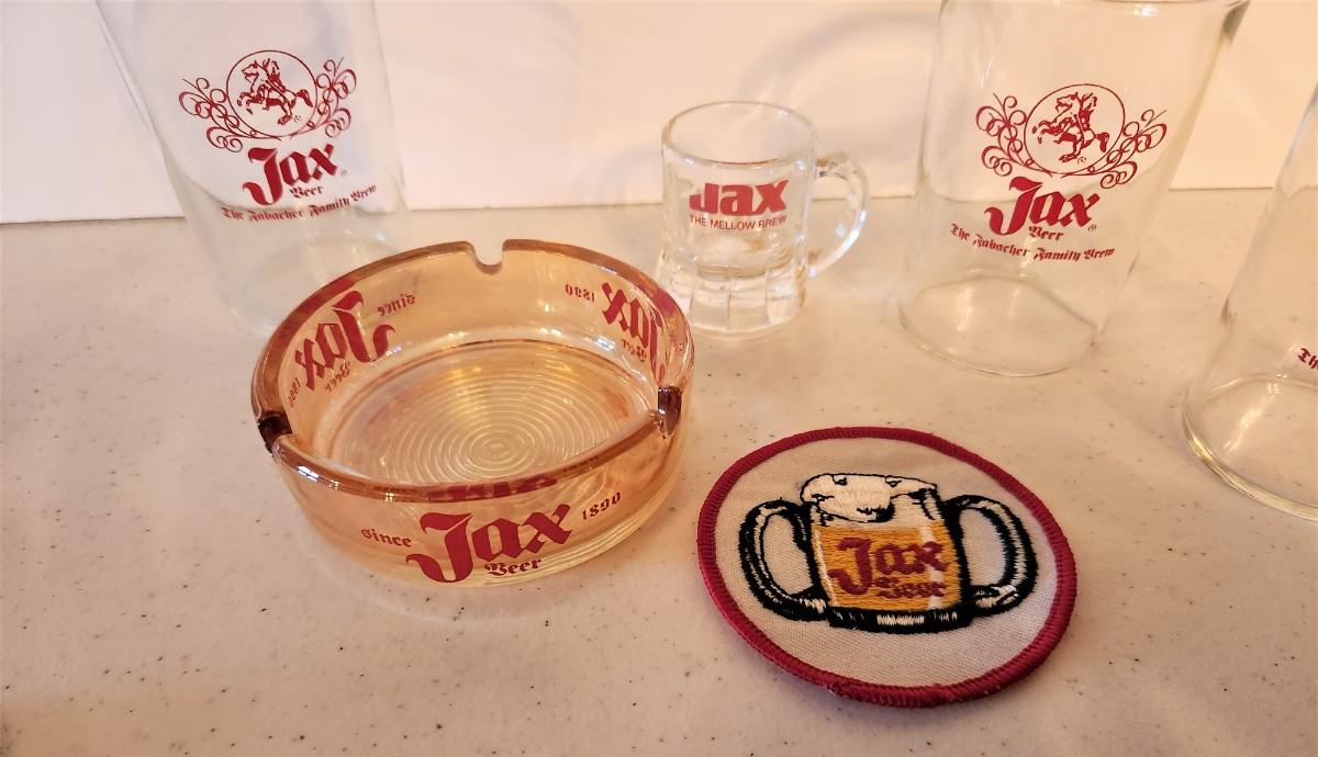 Lot #187  Good Lot of Vintage JAX BEER memorabilia - ashtray, patch, glasses