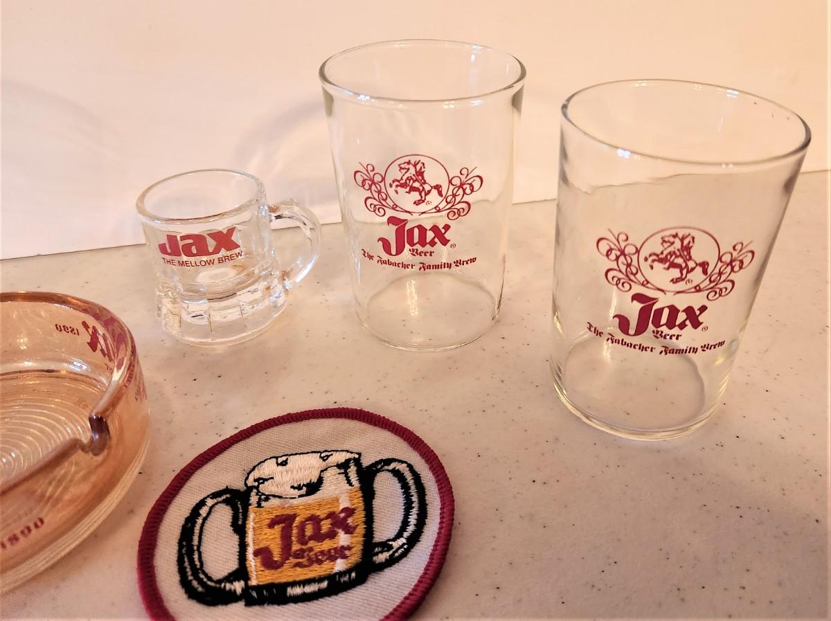 Lot #187 Good Lot of Vintage JAX BEER memorabilia - ashtray, patch, glasses