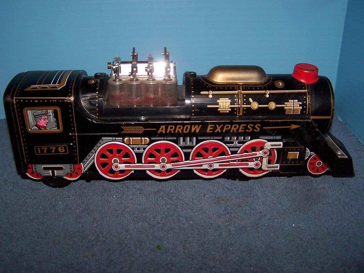 LOT 187 TIN LITHO BATTERY OPERATED ARROW EXPRESS LOCOMOTIVE