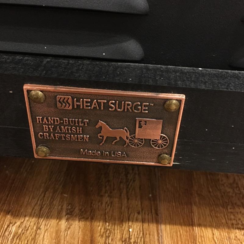 Keep yourself warm with this Heat Surge electric fireplace with a Amish made mantle. Fireplace has wheels to make it easy to move from room to room.