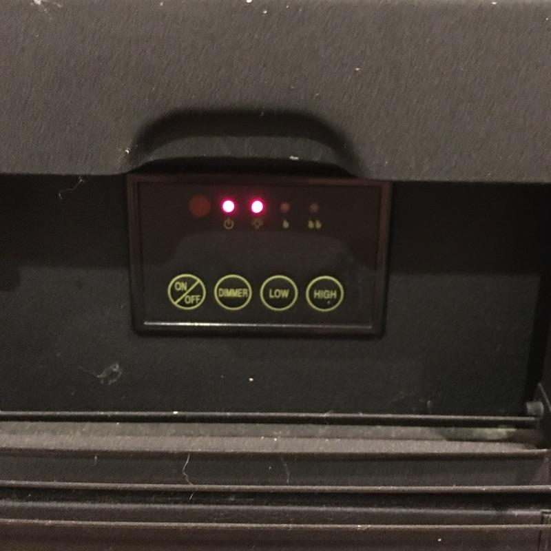 Fireplace powered on when tested. Fireplace measures 11.75” x 31.75” x 25.75”.