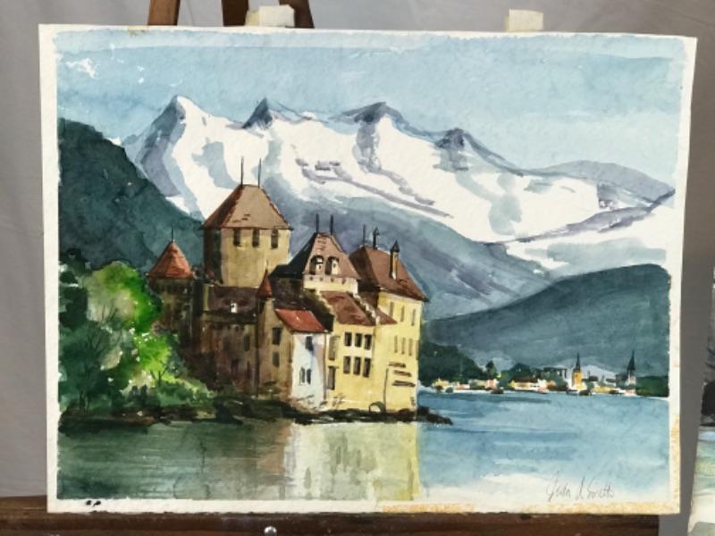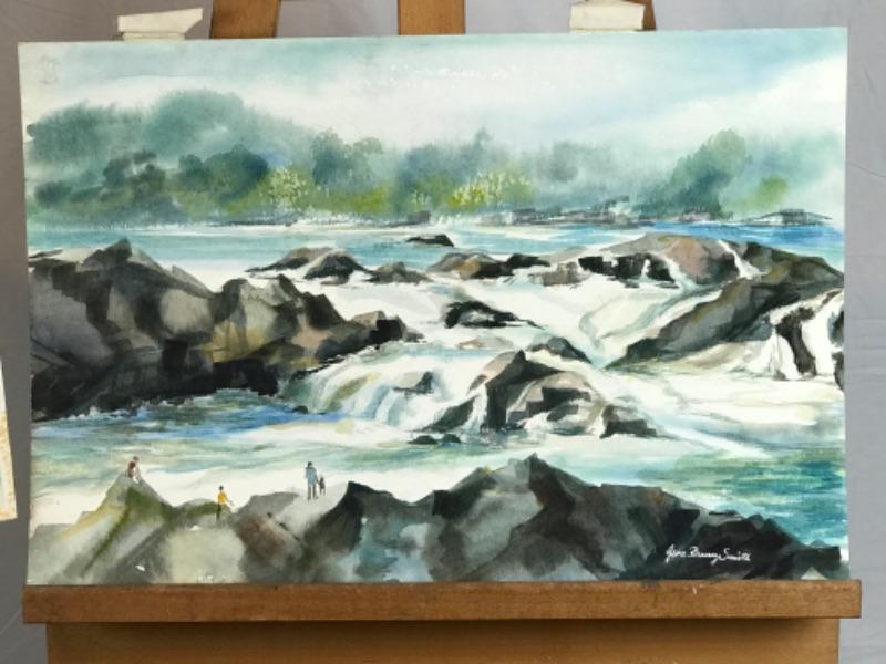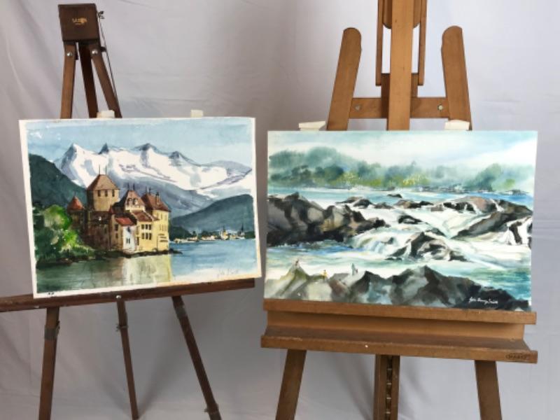 D - 187 Jean Ranney Smith Original Watercolor Paintings “Lakeside Home” “River Rapids”