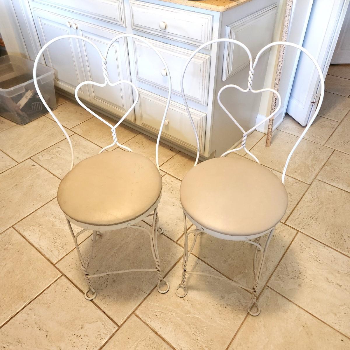 These vintage ice cream chairs are in great condition - about 3 feet tall, seats good.