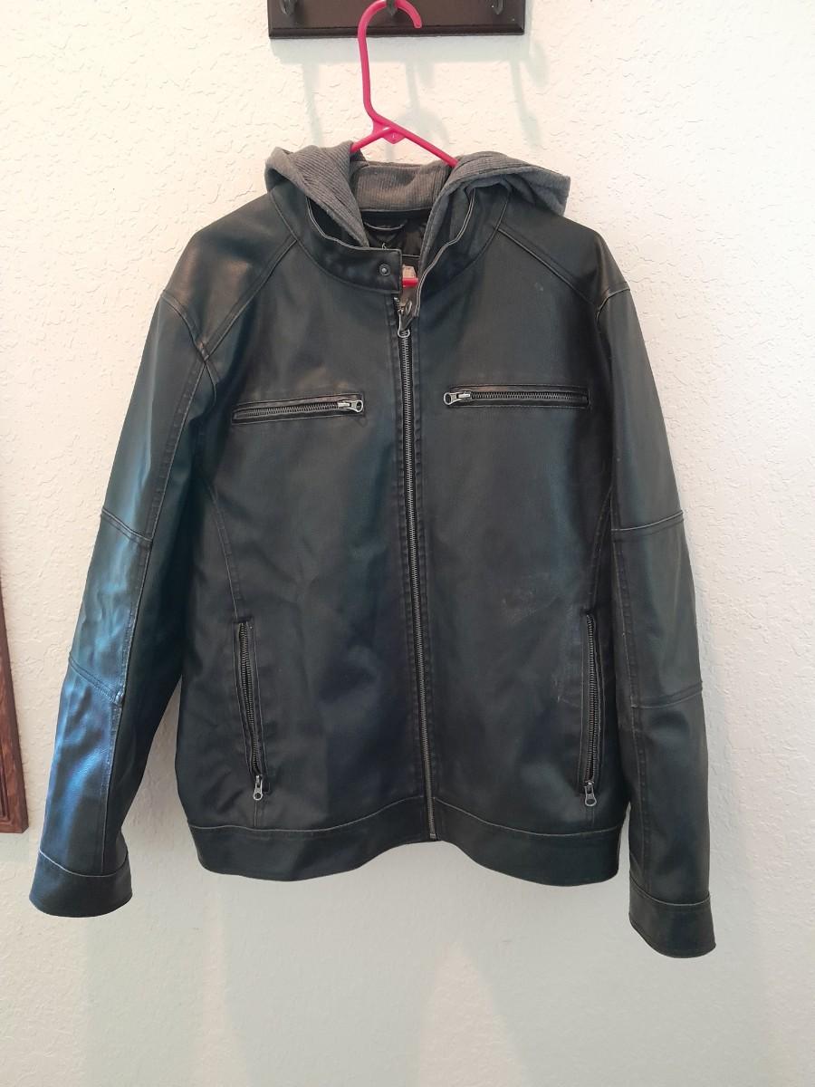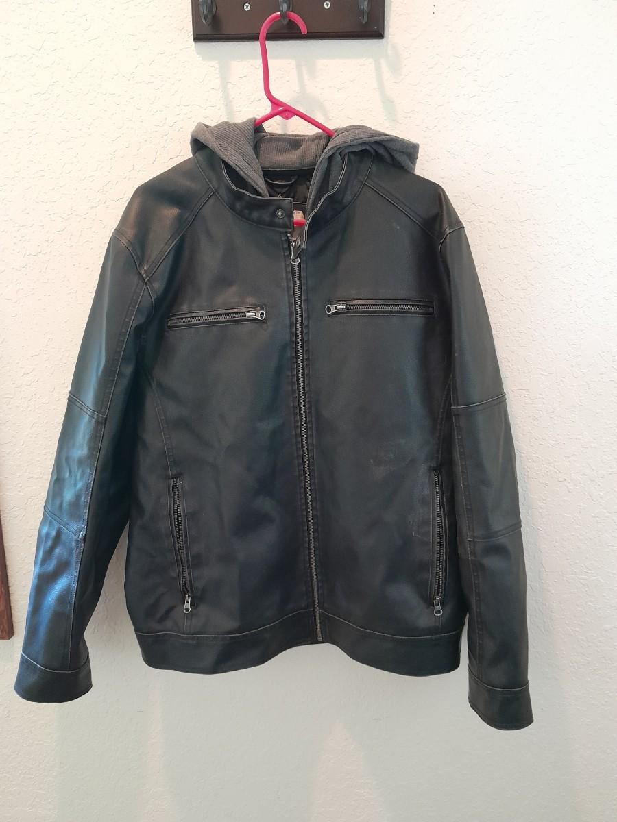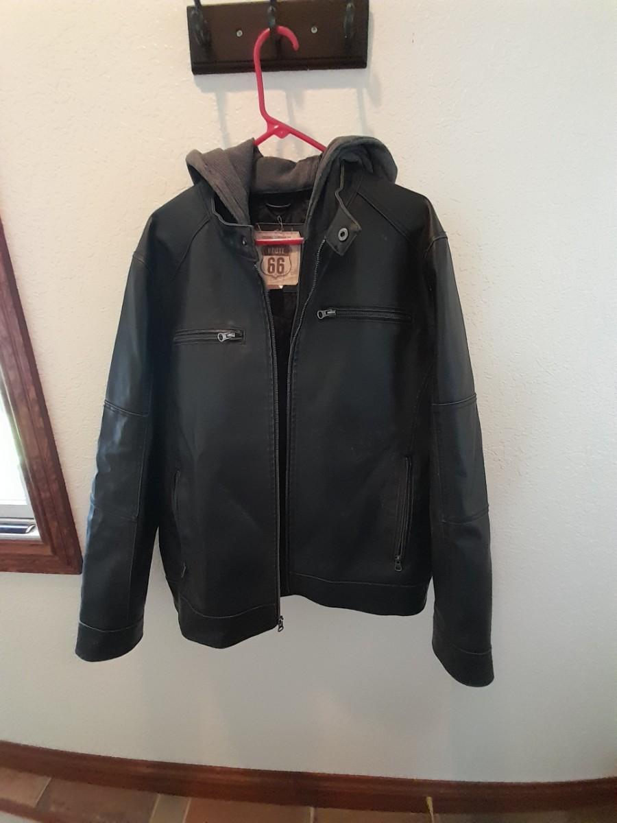 MEN'S LEATHER ROUTE 66 JACKET WITH HOODED LINER SIZE XL