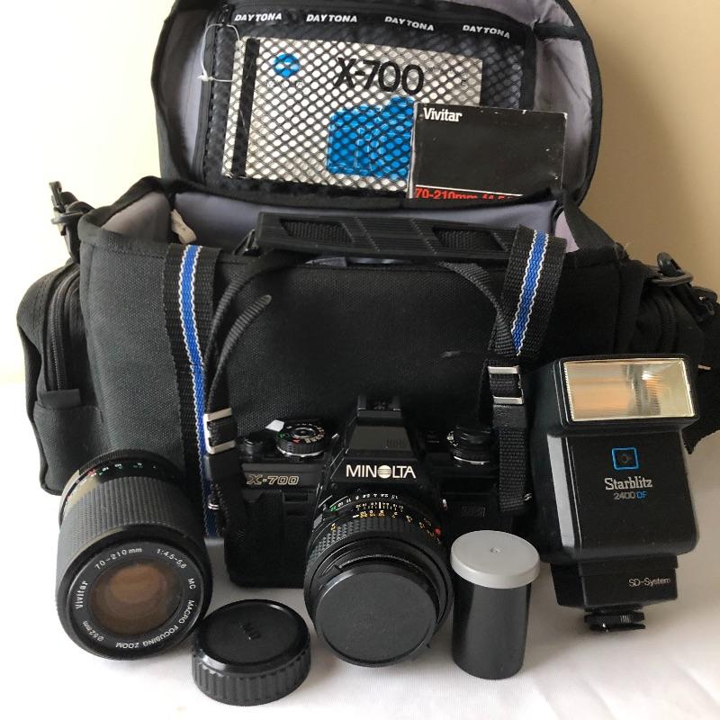 This state of the art SLR camera comes with an additional MD lense, Starblitz 2400 DF, owners manual and daytona brand camera and accessories bag. The bag measures 14.5 X 9 X 9.
