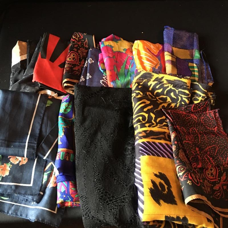 Lot includes a plethora of hankies, scarves, berets and straw hats. You will have enough scarves and hankies to last you through any season. The berets are wool and will spiff up any outfit while keeping you warm at the same time. The red one can help you relive the rocky scene with