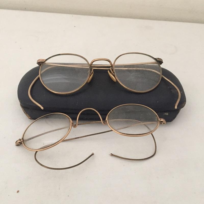 Two pair of vintage eyeglasses with one case. They definitely don’t make them like this anymore.