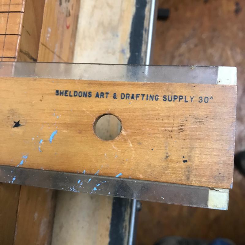 Vintage Ingento No. 6 paper cutter, T-square and mechanical pencil sharpener. Blade may need sharpening and hinge lubed a bit, but in good condition otherwise. This lot is available for local pick up in Asheville, NC only.