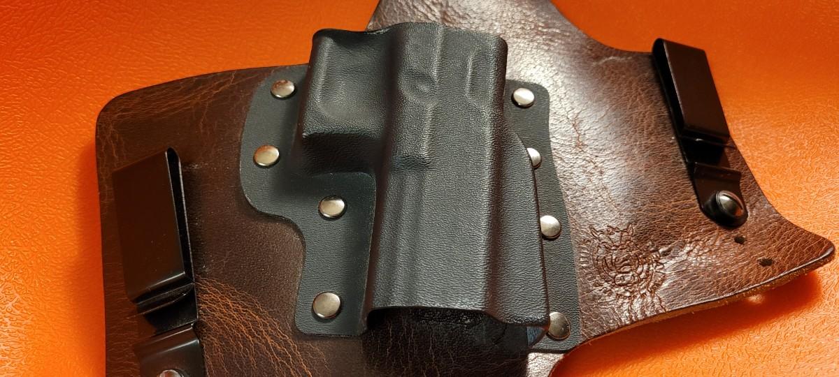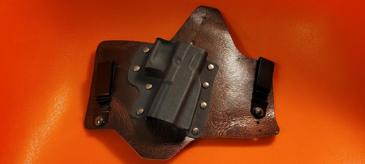 Small Caliber Holster with Leather IWB Comfort pad and Belt clips.
